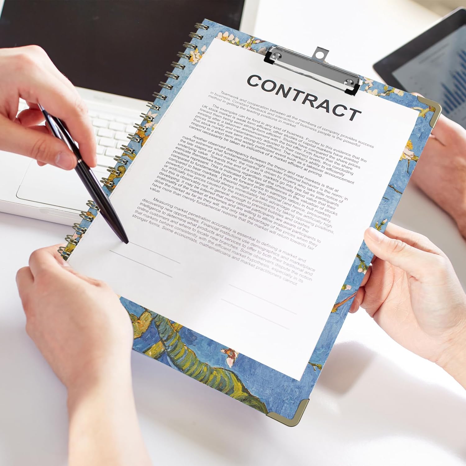 - 【Substantial Quality】Our clipboard folder featuring stunning full-color printing with a glossy lamination finish. Use sturdy metal clip with gripping. Twin wire spiral allows to flip the cover, no creases and cracks to offer durability. Clipboard with storage’s four corners are reinforced with metal, enhancing the clipboard's resistance to wear and tear. The removable notepad won't bleed ink