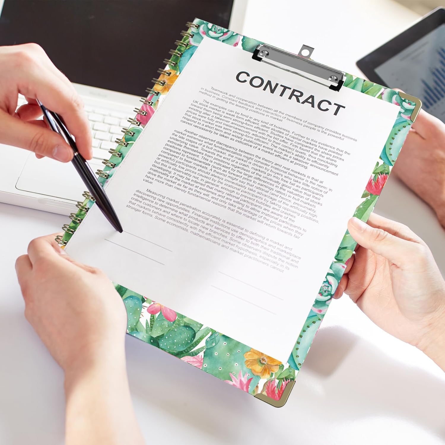- 【Substantial Quality】Our clipboard folder featuring stunning full-color printing with a glossy lamination finish. Use sturdy metal clip with gripping. Twin wire spiral allows to flip the cover, no creases and cracks to offer durability. Clipboard with storage’s four corners are reinforced with metal, enhancing the clipboard's resistance to wear and tear. The removable notepad won't bleed ink