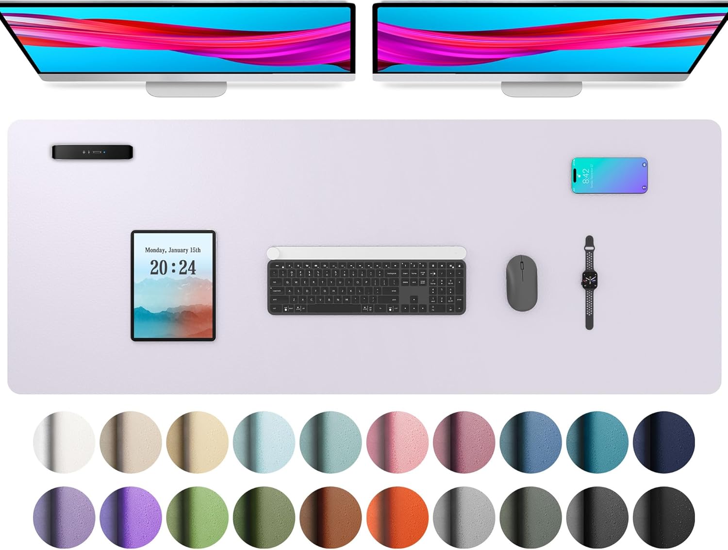 Aothia Large PU Leather Desk Pad Protector – Non-Slip Mouse Pad & Writing Mat for Office/Home, Waterproof, Easy to Clean (48" x 17", Soft Lavender)
