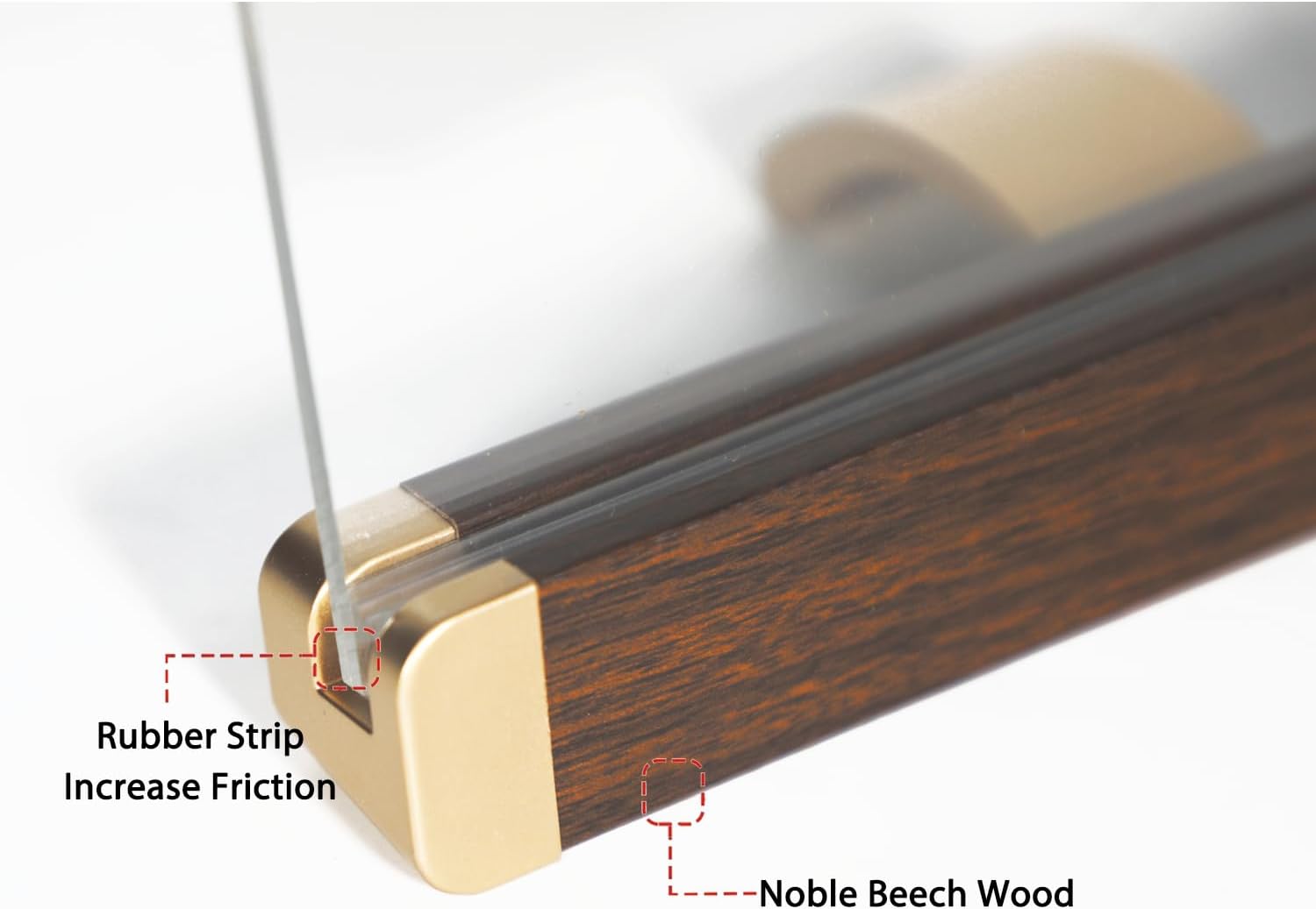 - Golemas classic wood sign holder is specially designed with classic wood grain and gold accents, the base adopts a arch curve, elegant yet noble. Whether it's for business or office, it will show your beautiful taste.