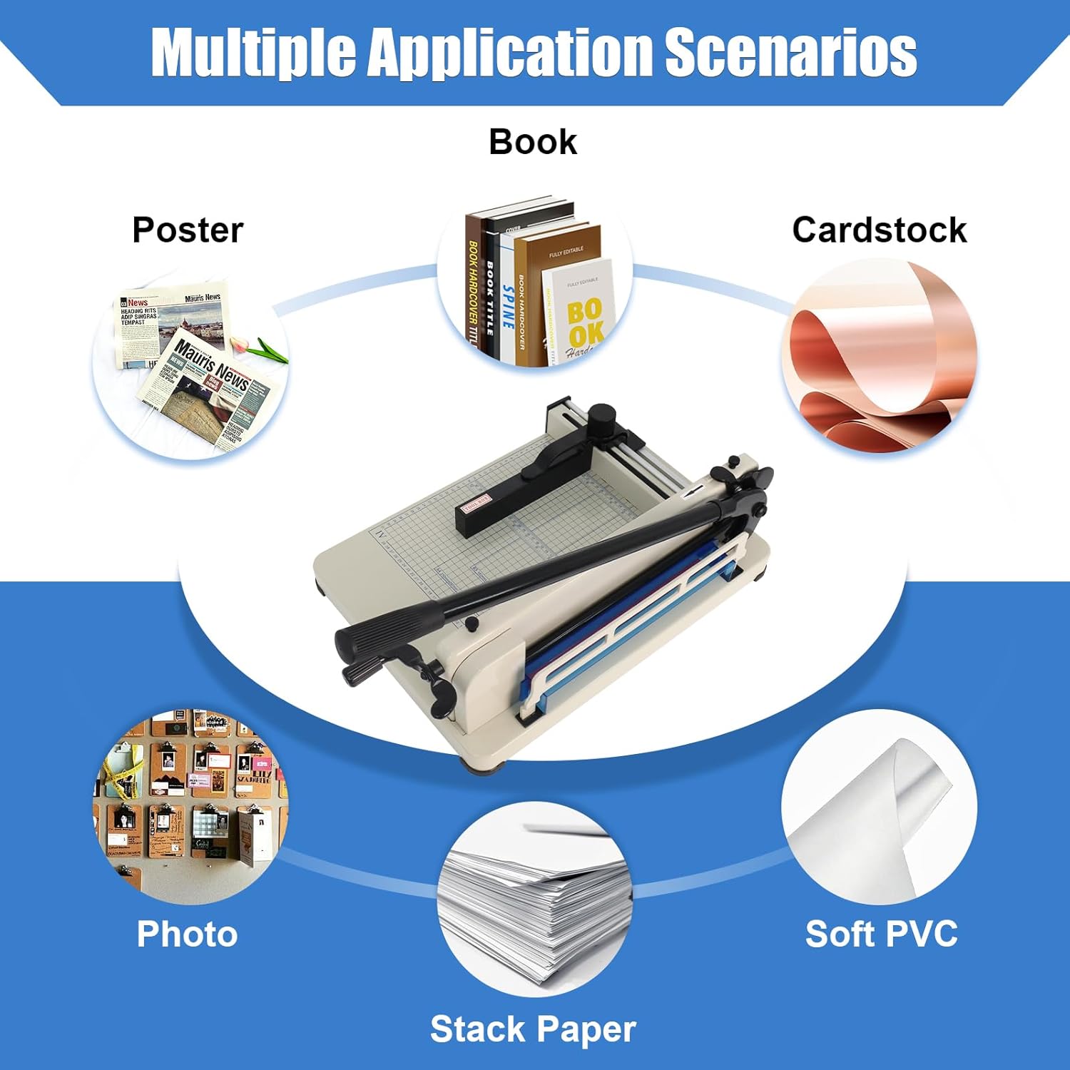 - 【Heavy-Duty】This model features a 12" cut length from front to back, large enough to cut posters and larger books. Cut through stacks of paper, cardstock, or photos effortlessly! Perfect for bulk office tasks, classroom projects, or crafting.