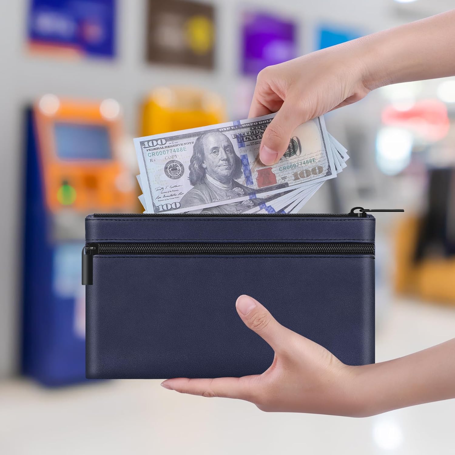 - Double Pocket Design: Two pockets increase the convenience of the cash bag, allowing you to better save and classify your personal items, like bank deposits, cosmetics, etc