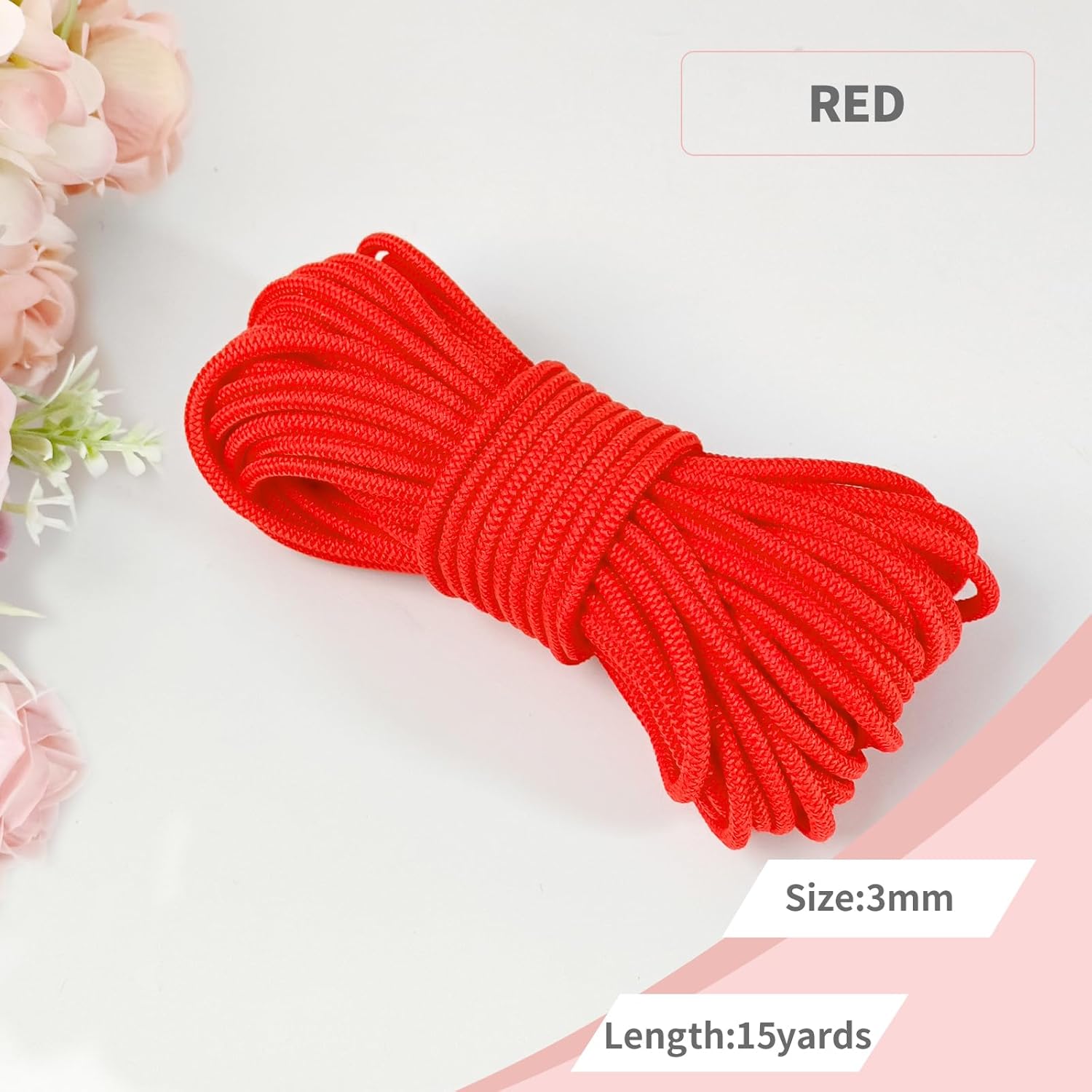 1/8 inch Non-Slip Elastic Band -3mm 15 Yards Soft Elastic Cord Stretch String Braided Thread for Sports Gear, DIY Crafts, Hair Bands, Shoelaces,Apparel Making & Camping Tie Down (Red)