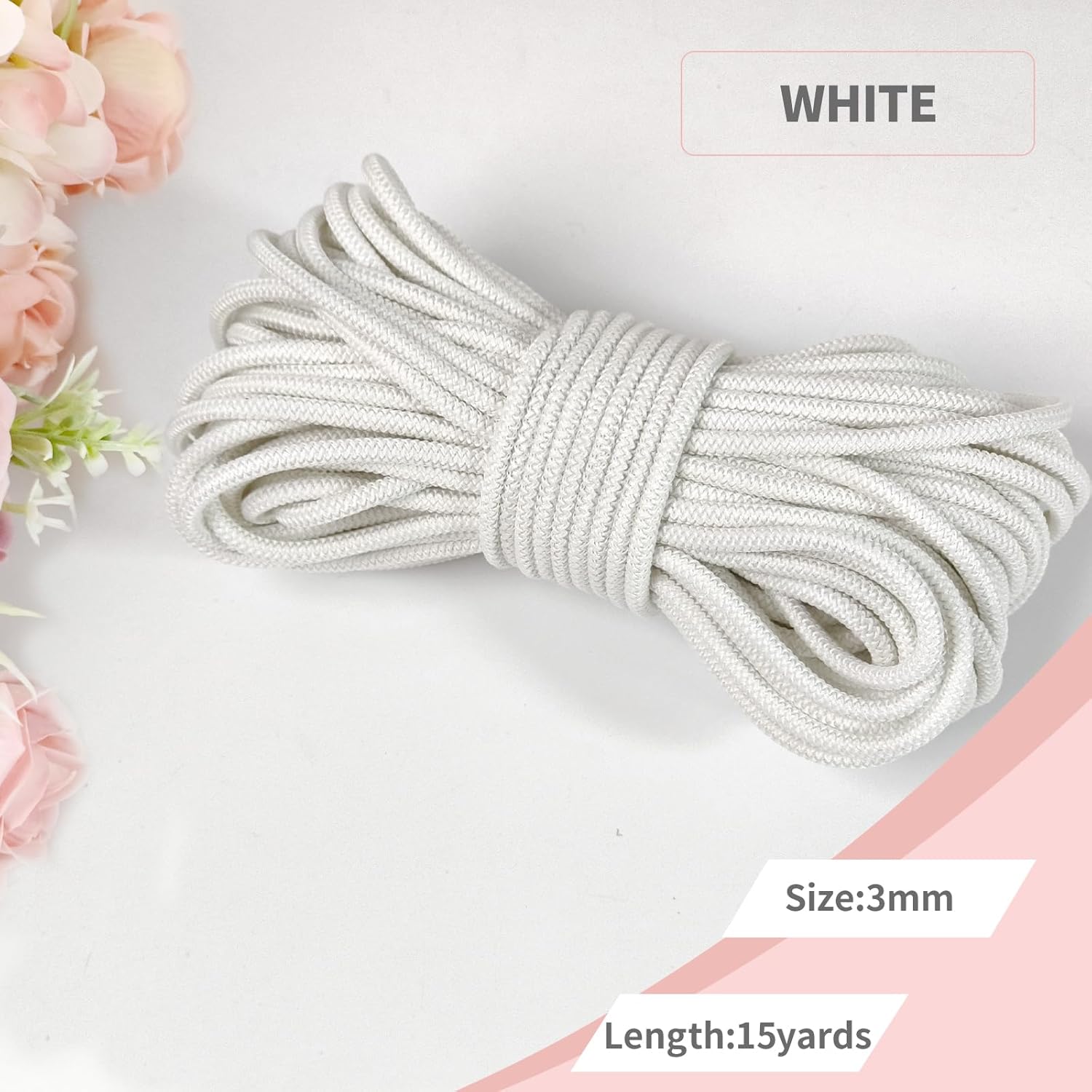 1/8 inch Non-Slip Elastic Band -3mm 15 Yards Soft Elastic Cord Stretch String Braided Thread for Sports Gear, DIY Crafts, Hair Bands,Shoelaces, Apparel Making & Camping Tie Down (White)