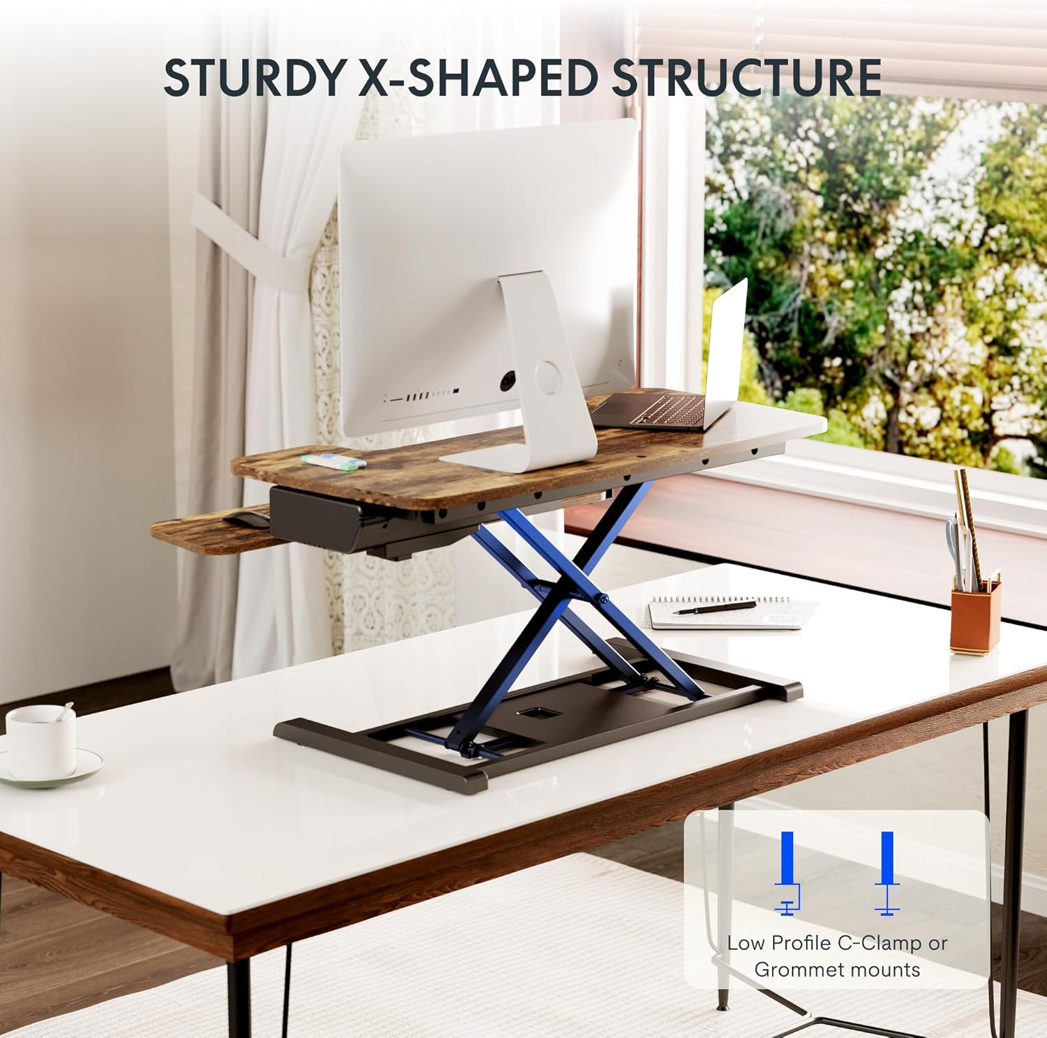 FLEXISPOT 35" Electric Standing Desk Converter, Height Adjustable Motorized Desk Riser for Computer Monitors & Laptop Workstation, Rustic Color