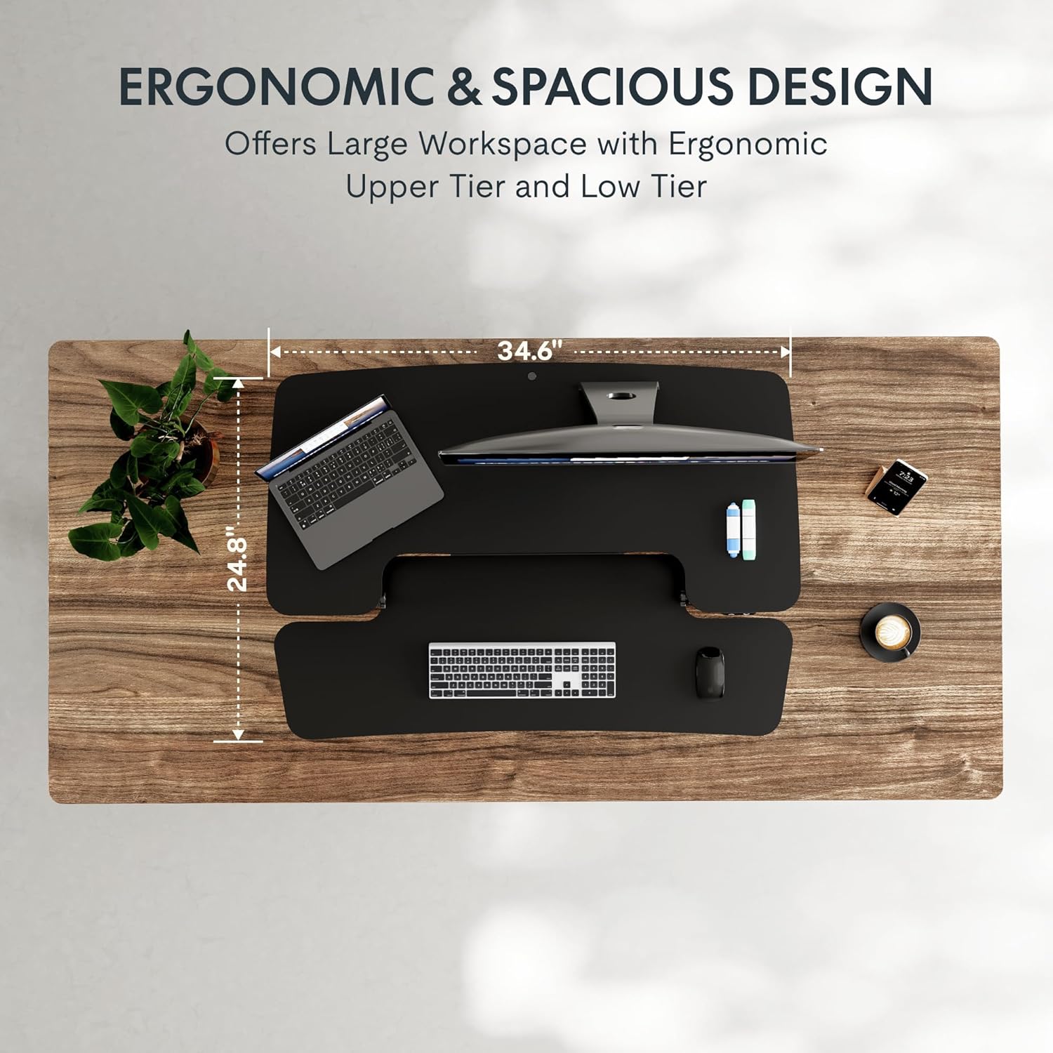 - True Ergonomic Relief – Say goodbye to back, neck, and wrist pain! This desk riser for standing promotes healthy posture with smooth, controlled transitions between sitting and standing, reducing fatigue and keeping you comfortable for hours.