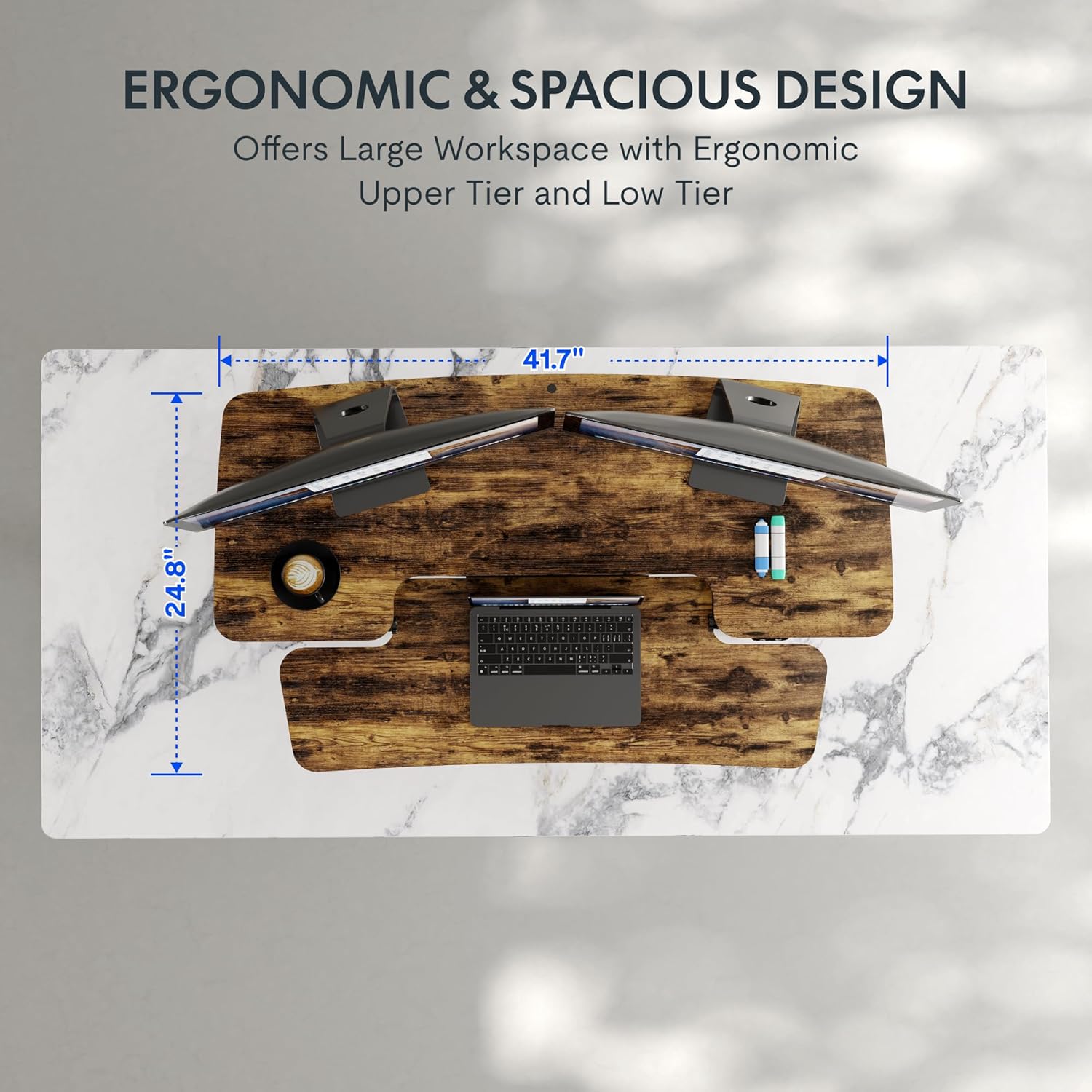 FLEXISPOT 42" Electric Standing Desk Converter Height Adjustable Desk Strong Weight Capacity Motorized Stand up Desk Riser for Office Home, Rustic Color