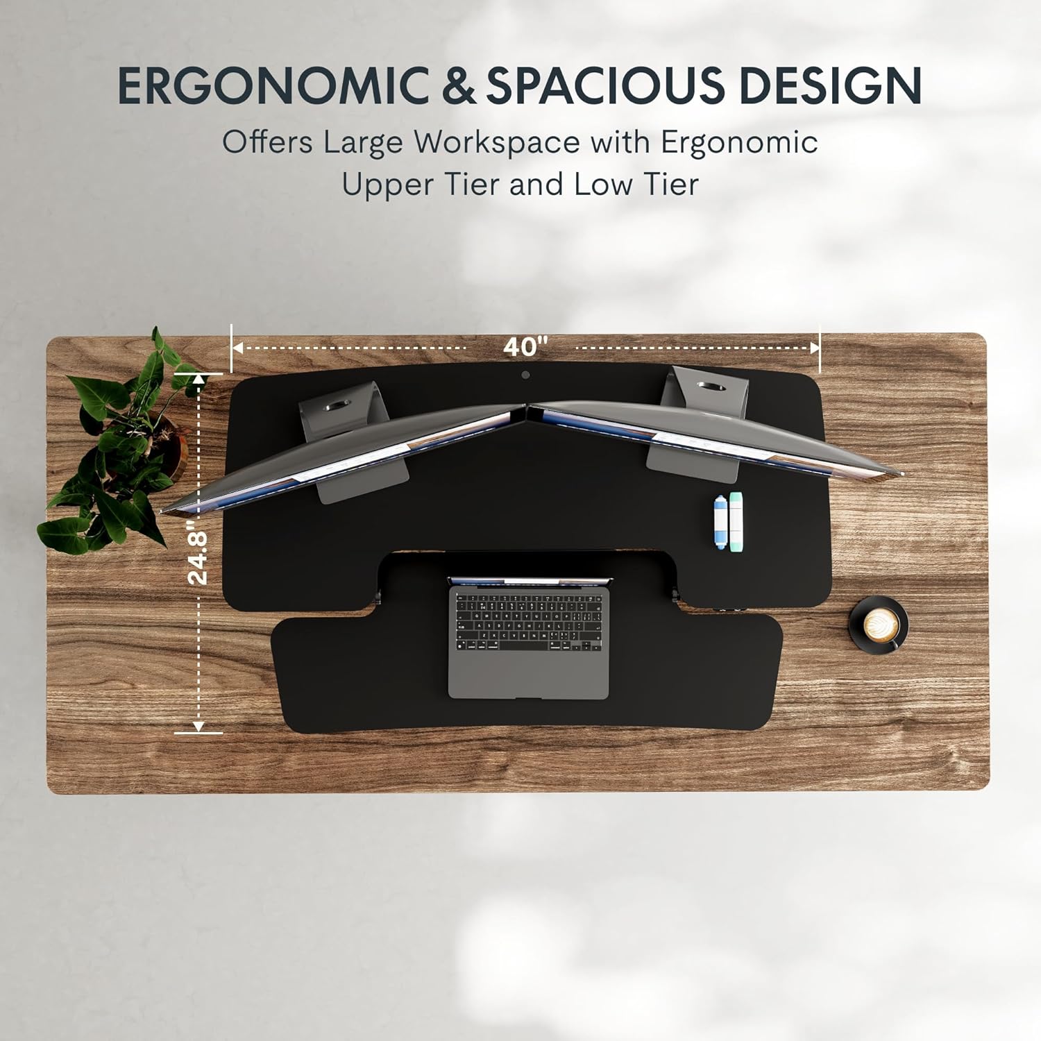 FLEXISPOT 40" Electric Standing Desk Converter, Height Adjustable Riser, Sit to Stand Monitor and Laptop Workstation with Wide Keyboard Tray, Black