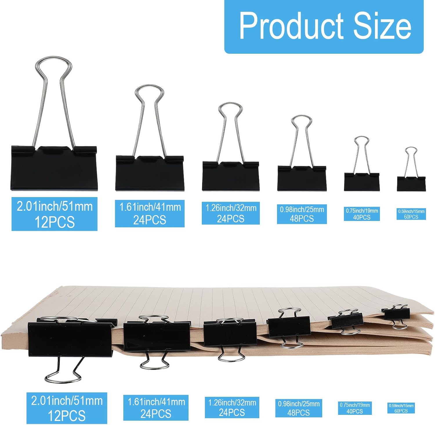- Package Includes: 208 PCS high quality black binder clips of 6 assorted sizes, in 6 transparent boxes, plastic container convenient for store and fetch, which can meet your different using needs.