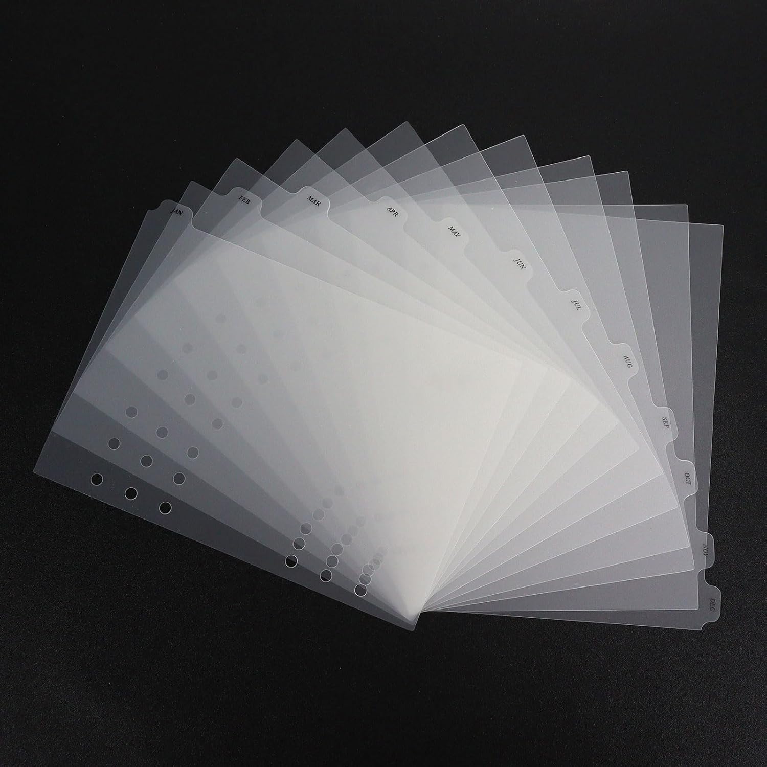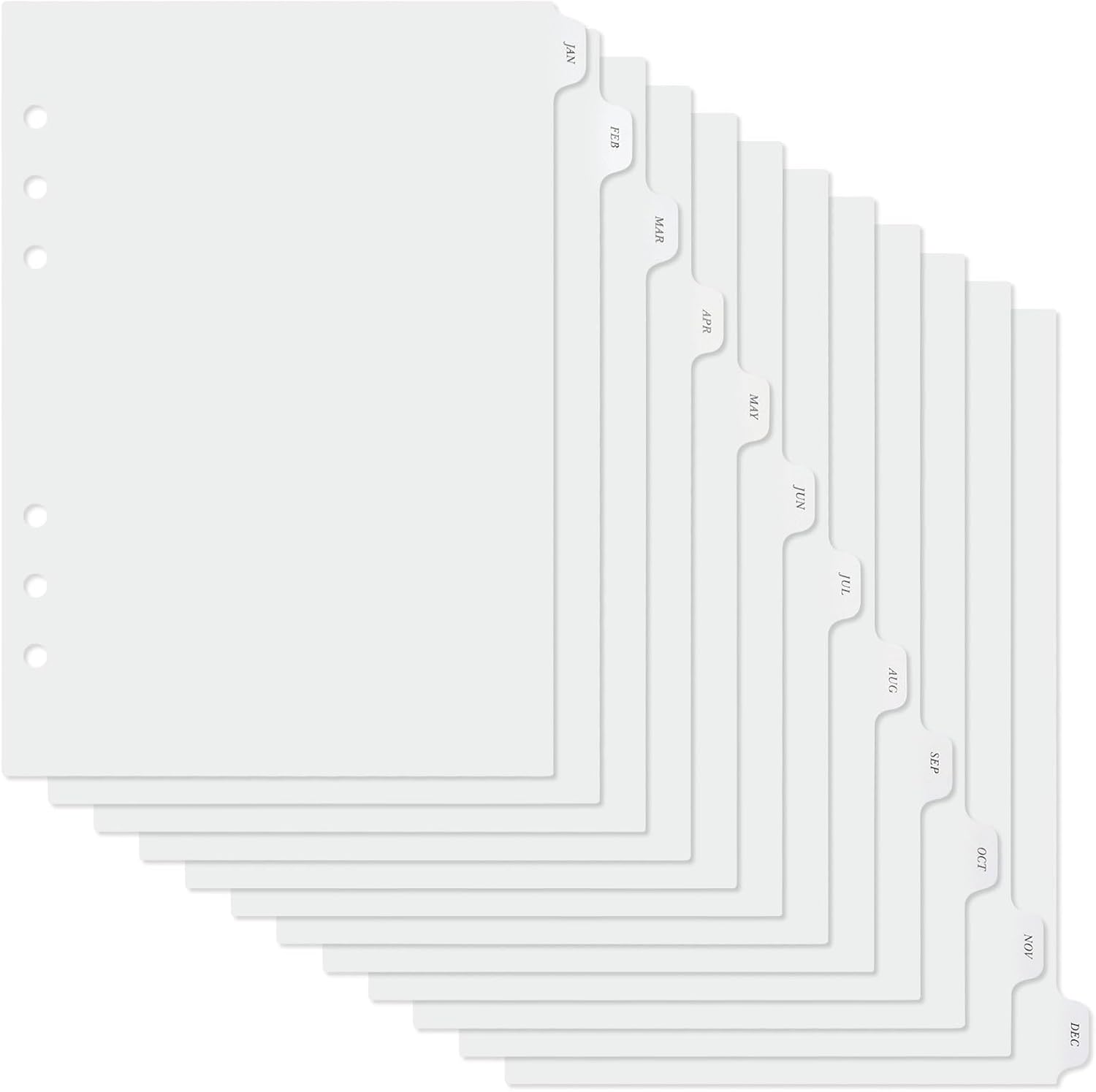 - featuring a 6 hole punched design, our monthly binder dividers are readily applicable to most binders and file systems; Whether you're a student, teacher, office worker, or homemaker, these dividers will help you manage and locate your documents with ease at most occasions