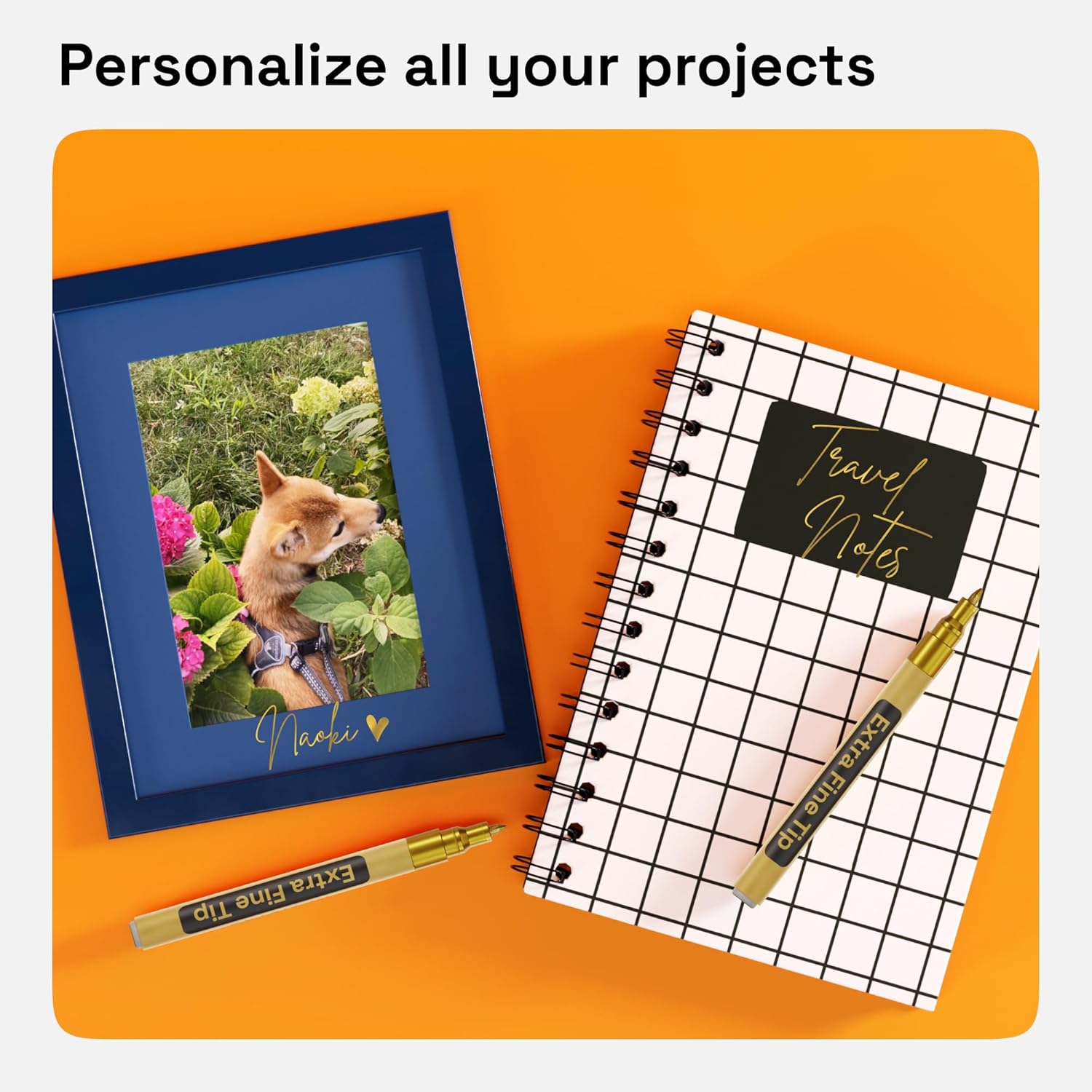 ARTISTRO 2 Gold Permanent Marker - Waterproof Markers for Tire, Fabric, Rocks, Glass, Ceramic, Wood, Paper - Oil Based Paint Pens - Extra-Fine Tip 0.7mm