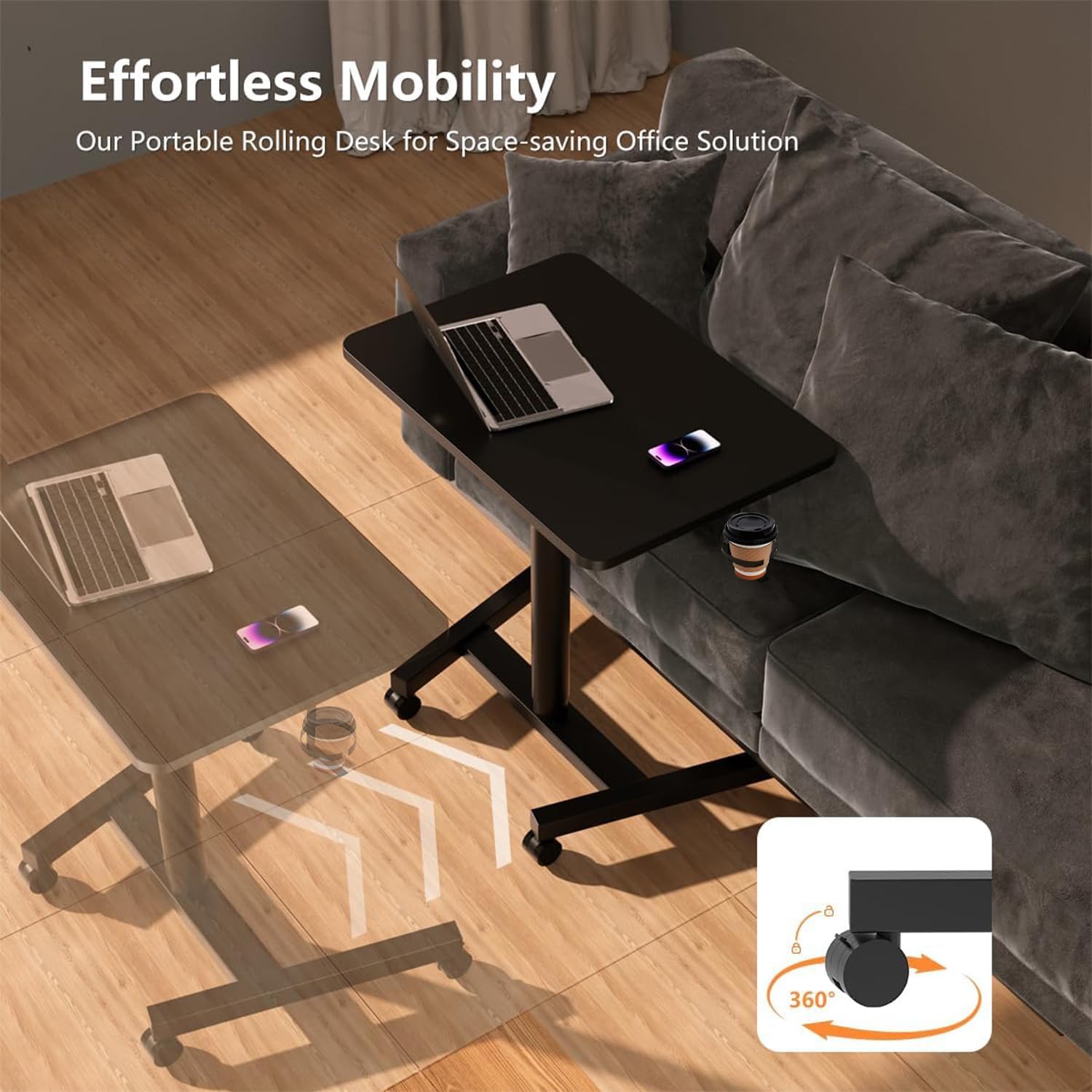 28-Inch Mobile Standing Desk Adjustable Height with Cup Holder, Portable Standing Desk with Lockable Wheels, Rolling Table for Home Office Classroom Hospital (Jet - Black)