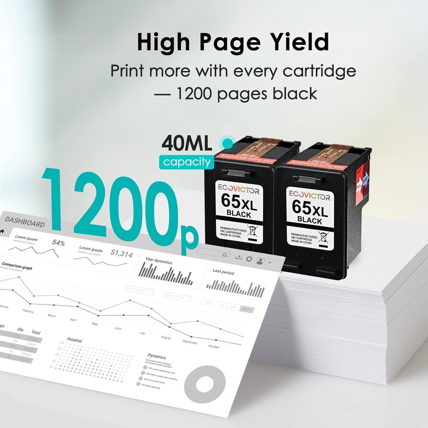 - Long-Lasting Page Yield: EcoVictor 65xl ink cartridges black for hp 65 black ink cartridge prints up to 600 pages each (at 5% coverage). EcoVictor for hp 65xl black ink cartridge is perfect for home, school, or office use. Enjoy long-lasting printing performance without the hassle of frequent replacements.