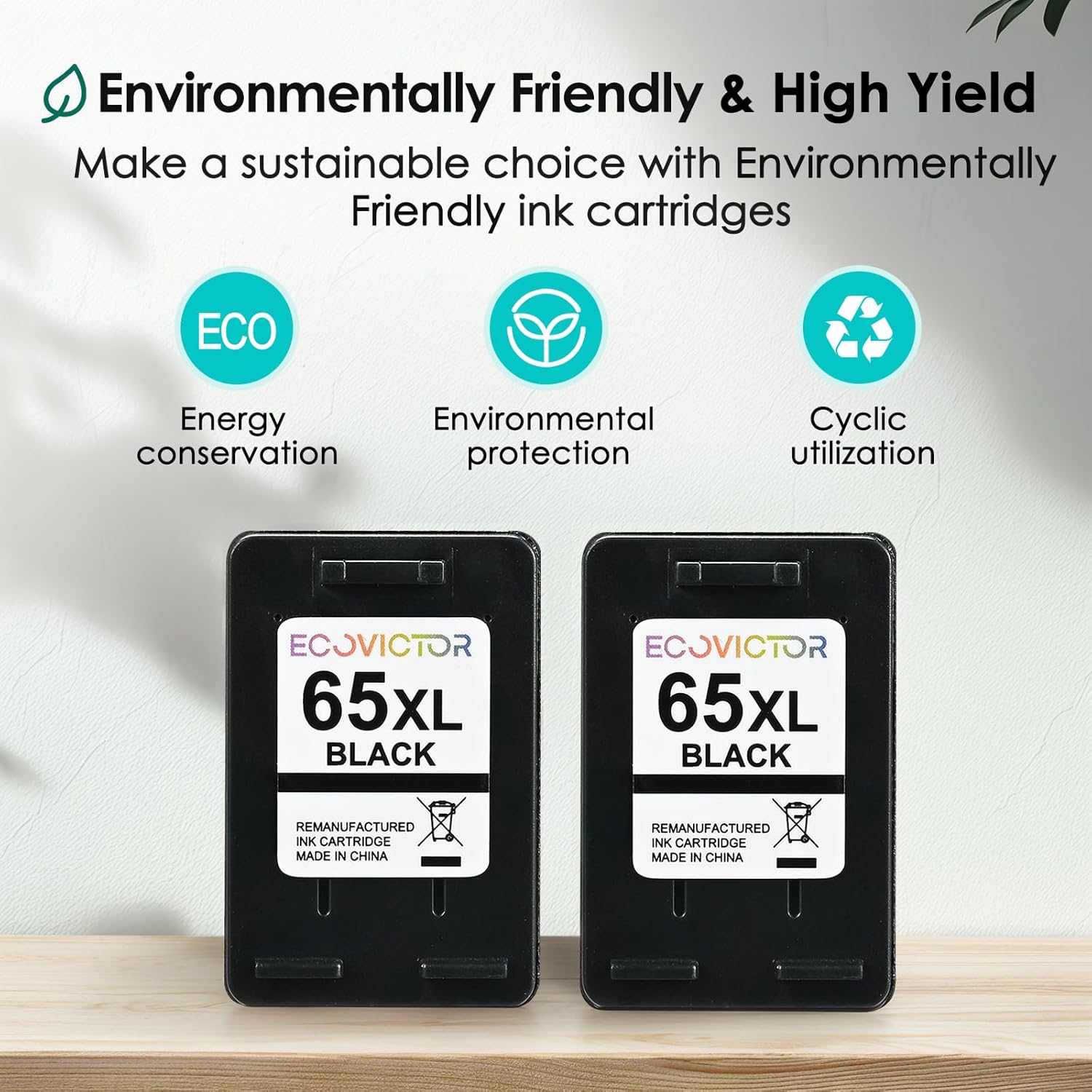 - Vivid, Professional Results: Formulated with premium-quality ink, our black printer ink hp 65 replacement for hp ink 65 black delivers crisp, clear text and rich, vibrant images. EcoVictor printer ink 65xl for hp black ink 65 is perfect for everyday documents, schoolwork, creative projects, and photos—fade-resistant and smudge-proof.