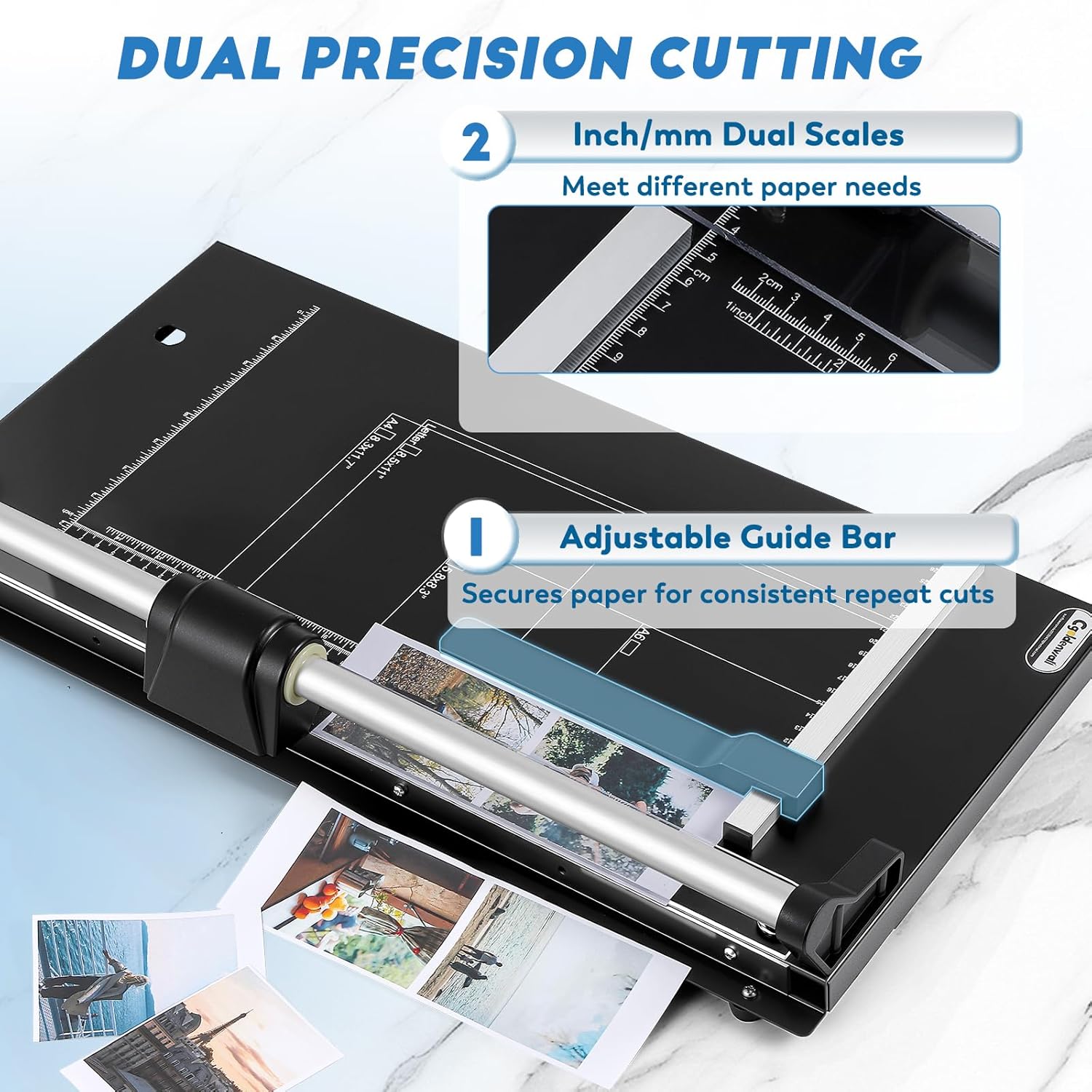 - DUAL PRECISION CUTTING: Laser-etched dual-scale (inch/mm) grid base + adjustable paper guide ensure perfect alignment for repeatable cuts—ideal for crafting multi-page documents, scrapbooking, or framing prints.