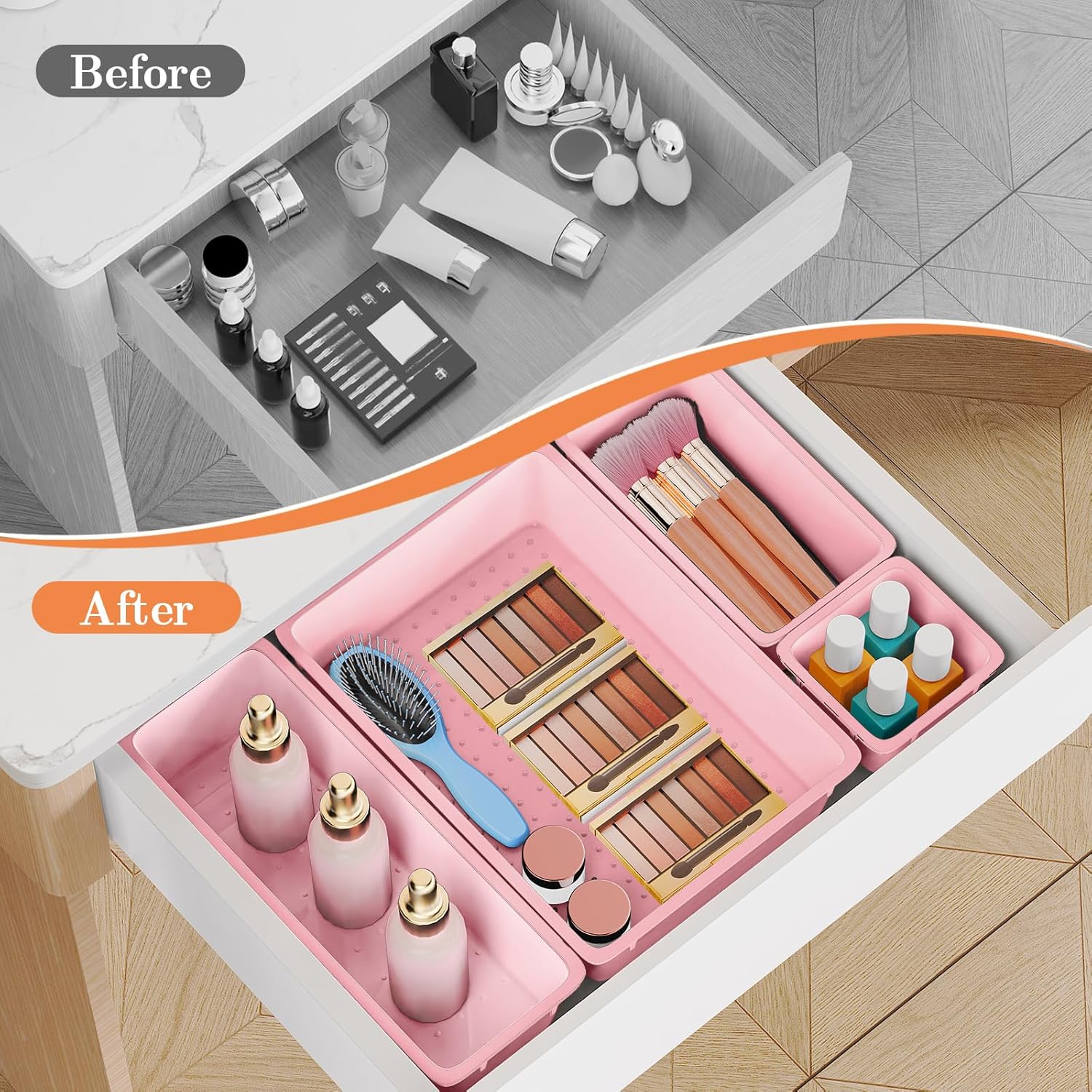 - Various Storage Options: These multi-functional drawer divider trays are suitable for use at home or in the office; suitable for all drawers, such as vanity/bathroom/kitchen/office, for organizing cosmetics, jewelry, accessories, office supplies, etc