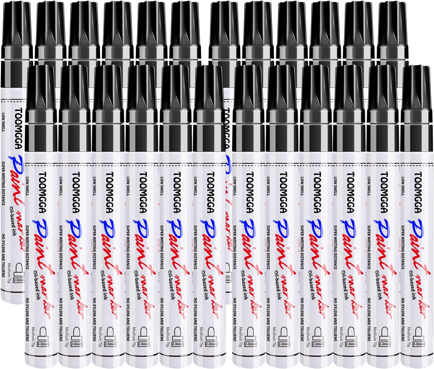Black Paint Pens Permanent Paint Markers - 24 Pack Oil Based Marking Pens, Medium Point, Quick Drying and Waterproof for Rock Painting Car Tyre Metal, Plastic, Canvas, Wood, Glass