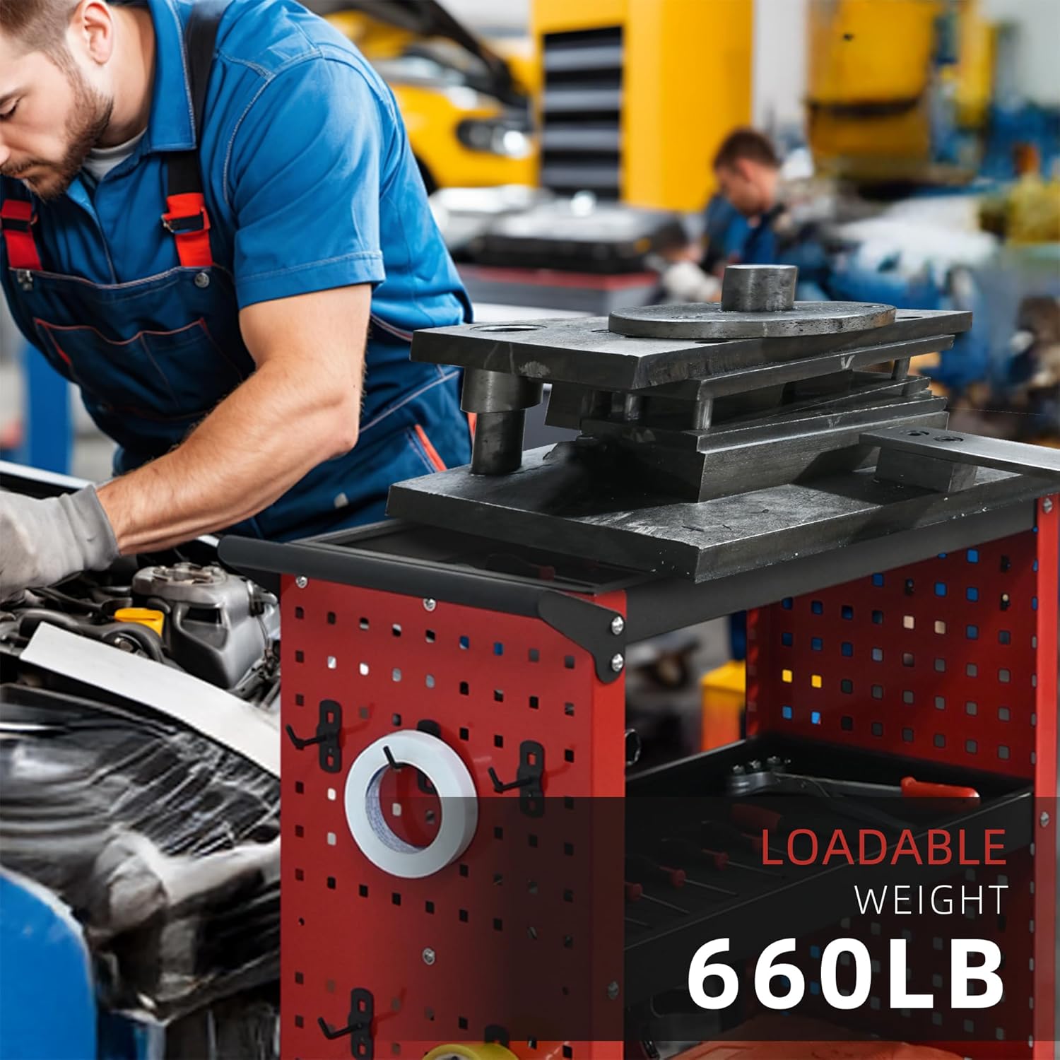 - Durable Design: Made of high-strength steel with a rust-resistant powder-coated finish, this tool cart withstands daily wear and tear while ensuring long-term reliability and stability, with a load capacity of up to 660 lbs and net weight of 34.2 lbs