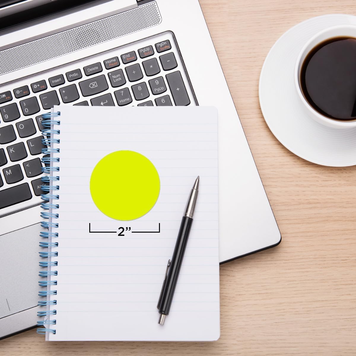 - Vibrant Fluorescent Yellow Circle Label Stickers; Crafted from high-quality paper, the fluorescent matte finish colored dots are not only durable but also easy to write on.