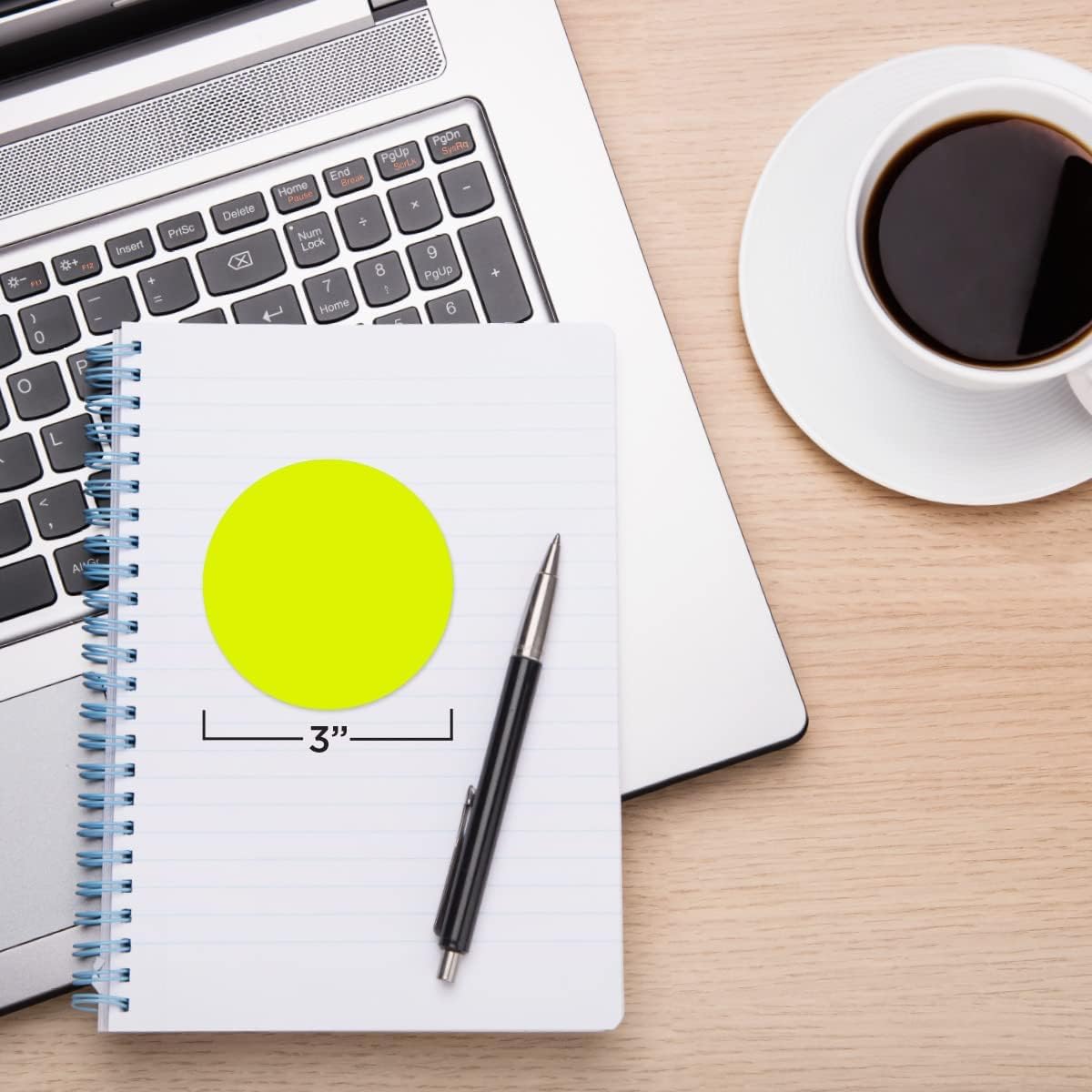 - Generous Size Fluorescent Yellow Stickers: These large blank stickers measure 3 inches in diameter, providing ample space for labeling, identification, and color coding.