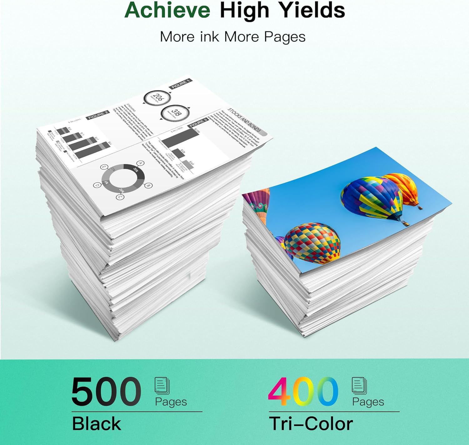 - High Pages Yields: 500 pages per black for hp923 ink cartridges and 400 pages pages per 923 ink cartridges combo pack cyan magenta yellow (at 5% coverage for A4 paper)