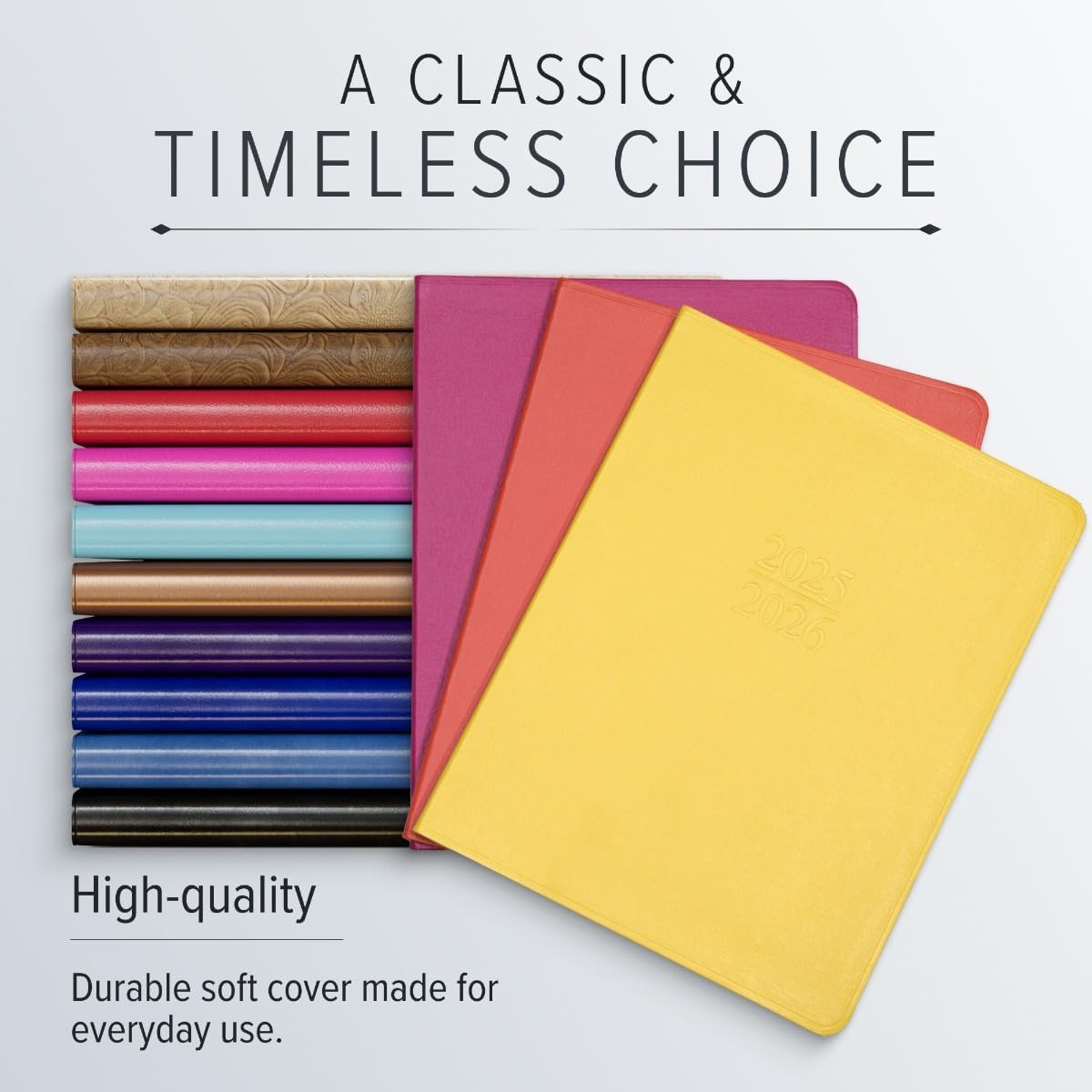 Gallery Leather Academic Planner 2025-2026, Teacher and Student Weekly Monthly Planner, Elegantly Bound Calendar with Gold-Gilded Page Edges, 18 Months - Acadia Lime - 9x7"