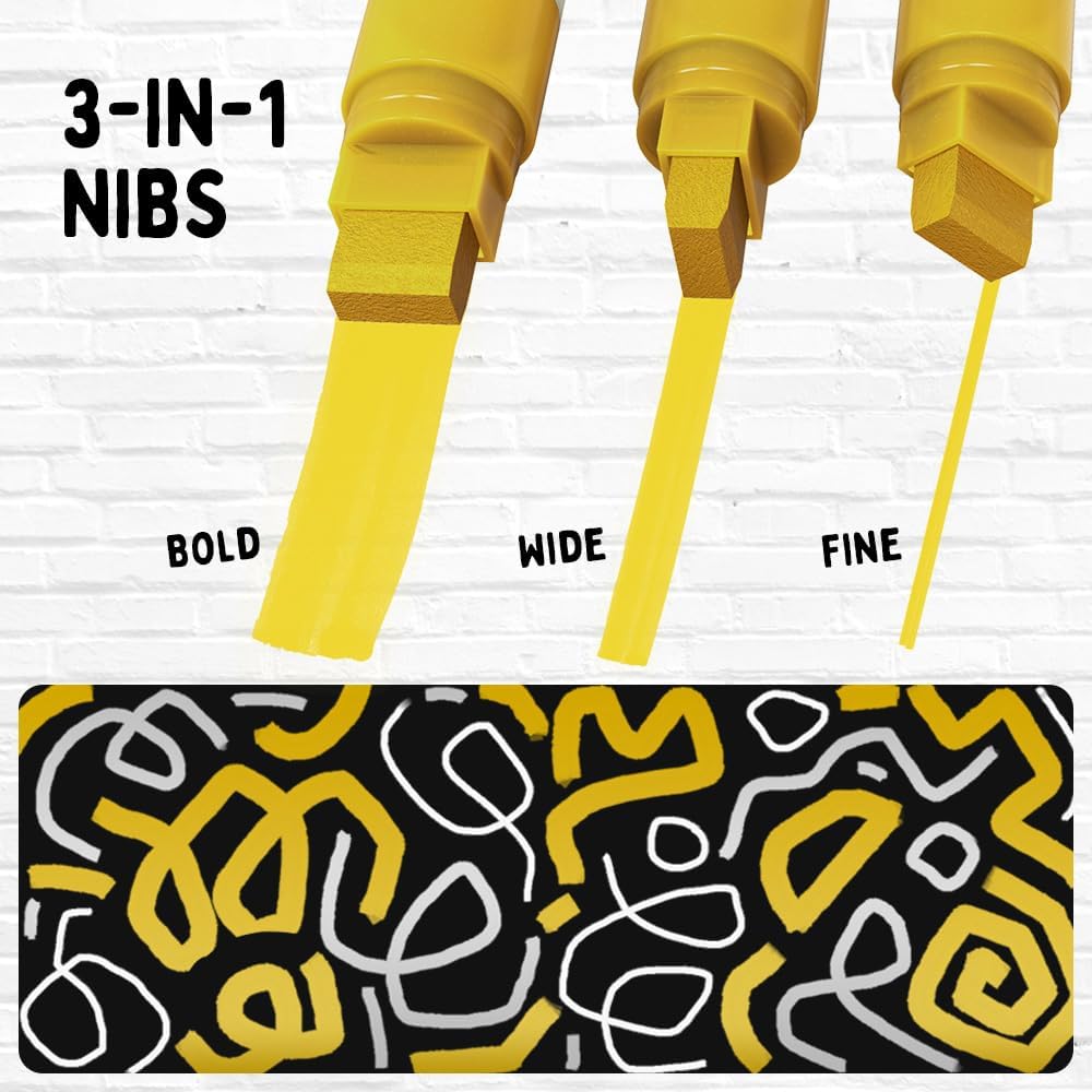 - 15mm Jumbo Markers Felt Tip - 3 In One Nib - The Rectangular Thick Tip enables you to use; Wide Lines, bold lines & extra fine lines. These paint markers set are perfect for both fine details and broad fat tip used for filling in large areas.