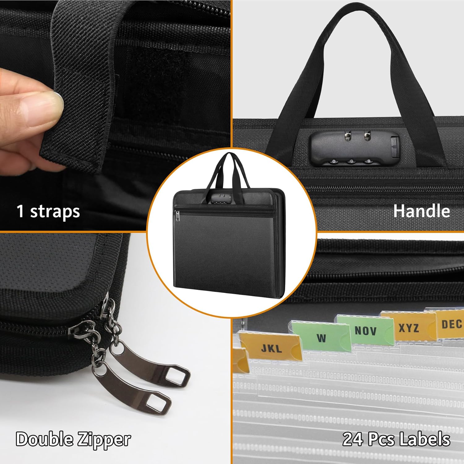 - Color-Coded Labels & Dual Zippers – Stay organized with color-labeled tabs for quick file categorization. The dual zipper design allows smooth opening and closing, streamlining your workflow and saving time