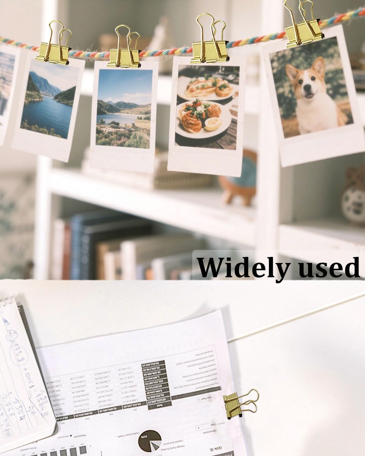 Assorted Binder Clips 0.75/1/1.25in 25-Pack -Gold Tone Clips for Office & Home