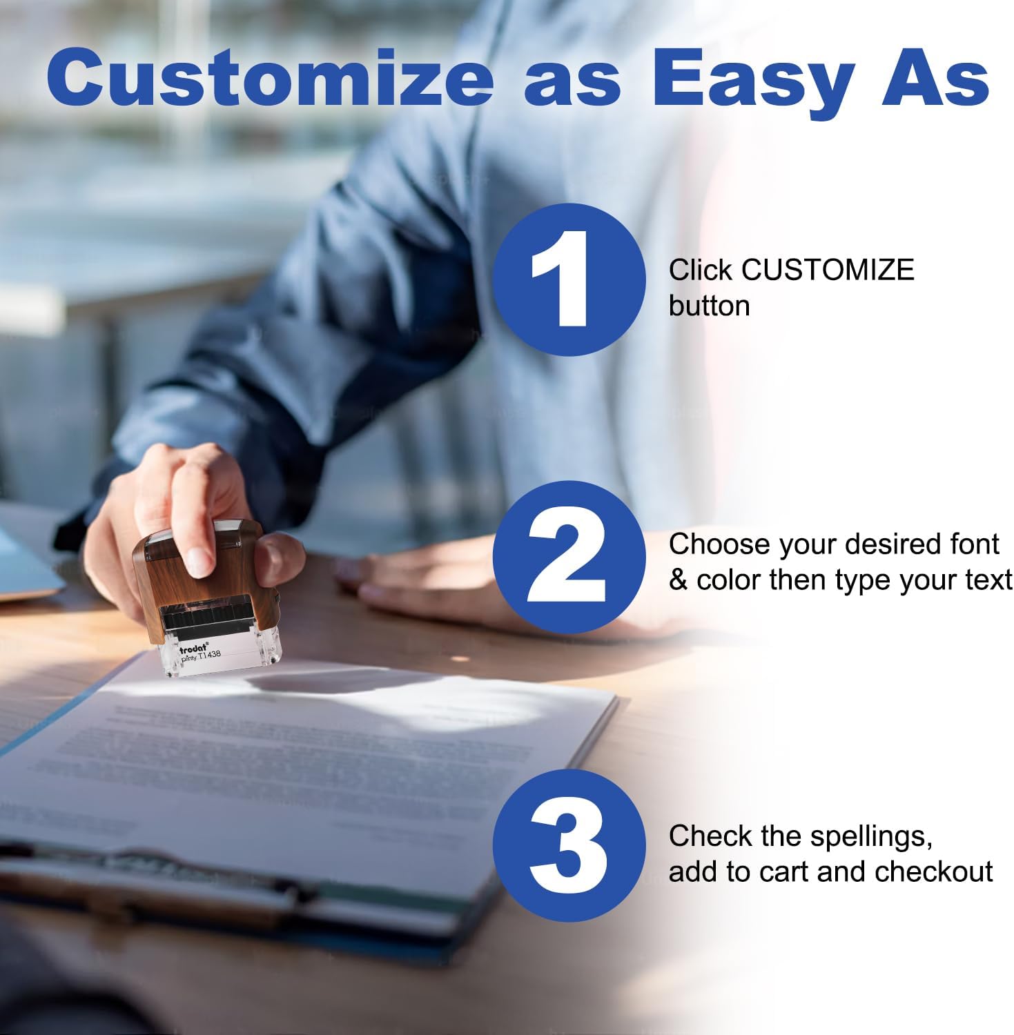 - Personalized stamp:stamp are available in 3 sizes, 5 colors, multiple fonts and for you to choose from.Enhance your business stamp with your preferred text, font, and color for a personalized finish on letters and packages.