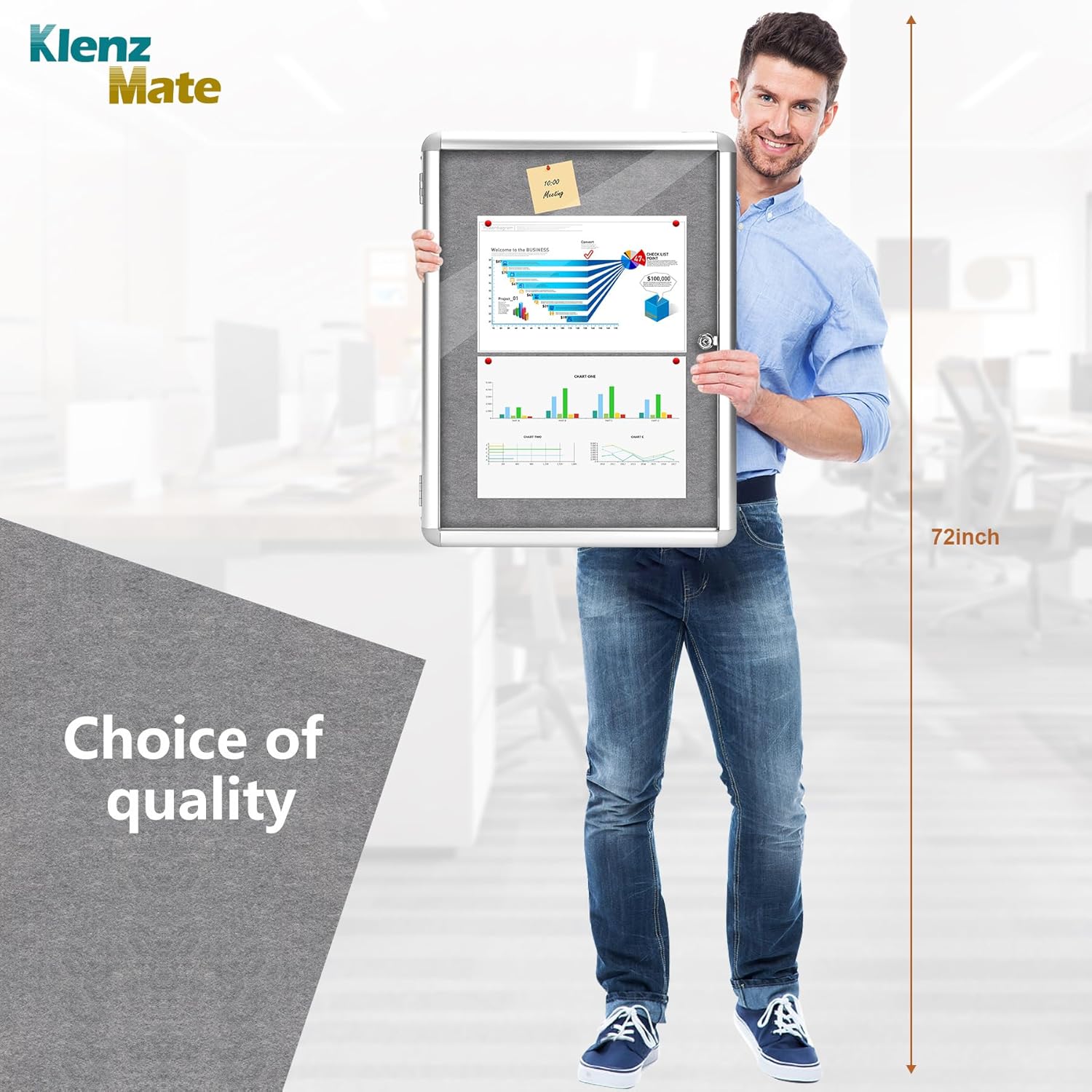 - High-quality Details: Eco-friendly felt backing, self-repairing, accepts pins and tacks, shatter-resistant acrylic door,scratch-resistant silver-plated aluminum frame and ABS round plastic corners