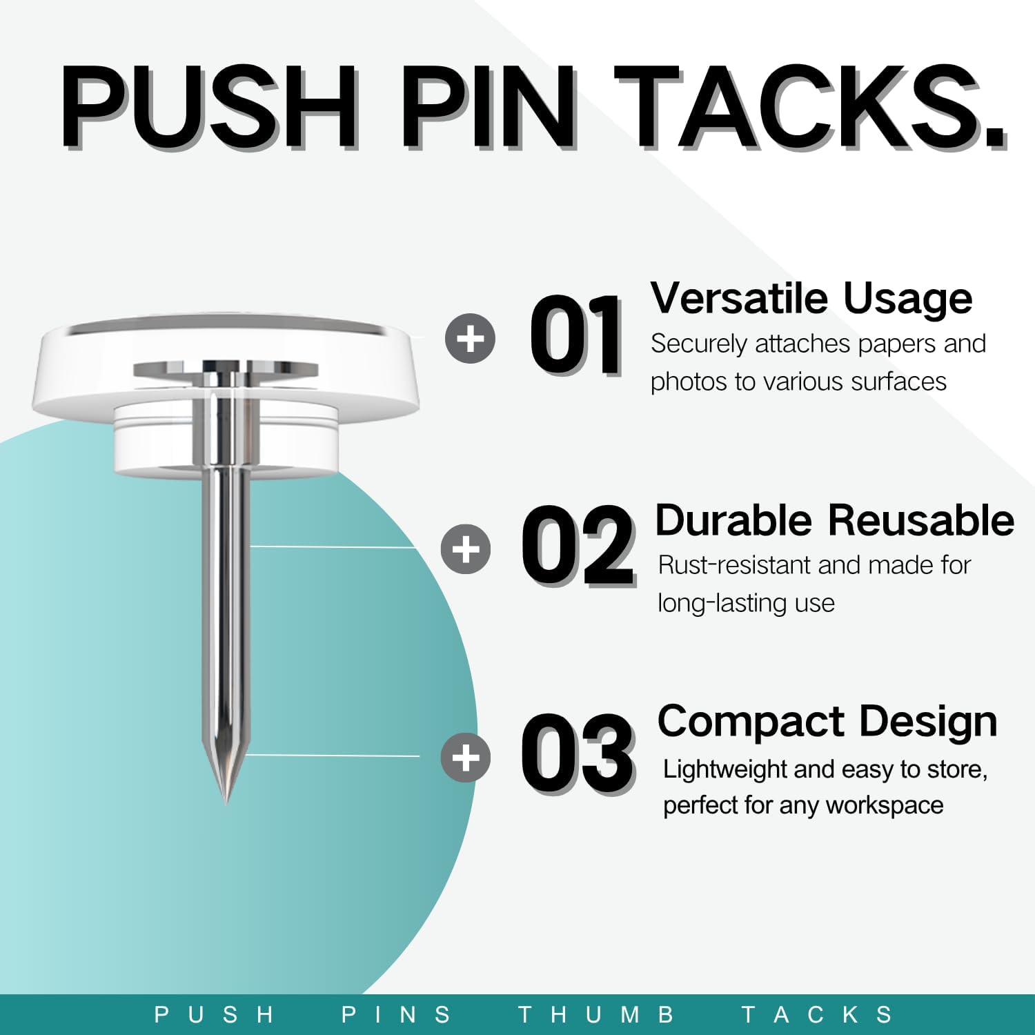 150 PCS Flat Clear Short Push Pins for Wall Thumb Tacks for Walls Flat thumbtacks Push pin for Bulletin Board Shadow Box Display Thumbtack for Cork Board