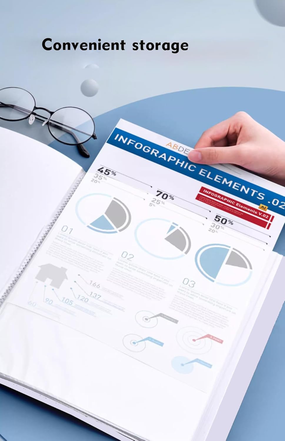 - 100 Secure Pockets for Maximum Organization — Holds A4-sized documents neatly; each pocket is extra-thick to prevent tears and spills, keeping your papers safe and organized.