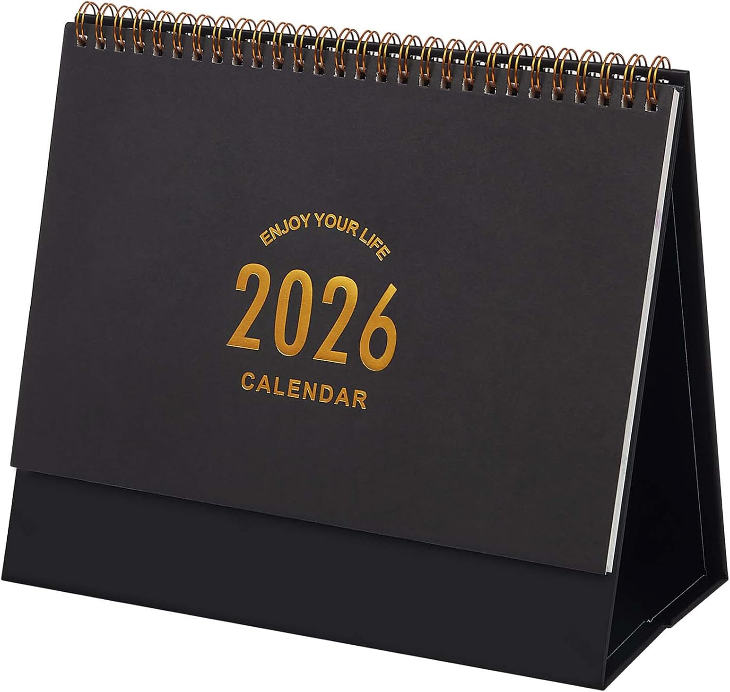 - 🗓️ Standing Desk Calendar - This 2026 desk calendar is a perfect tool to help your life more productive, It is supported by thick board to make it a standing desk calendar, Durable twin spiral binding for easy page flipping, you can flip the past month to a new month instead of tearing it away.