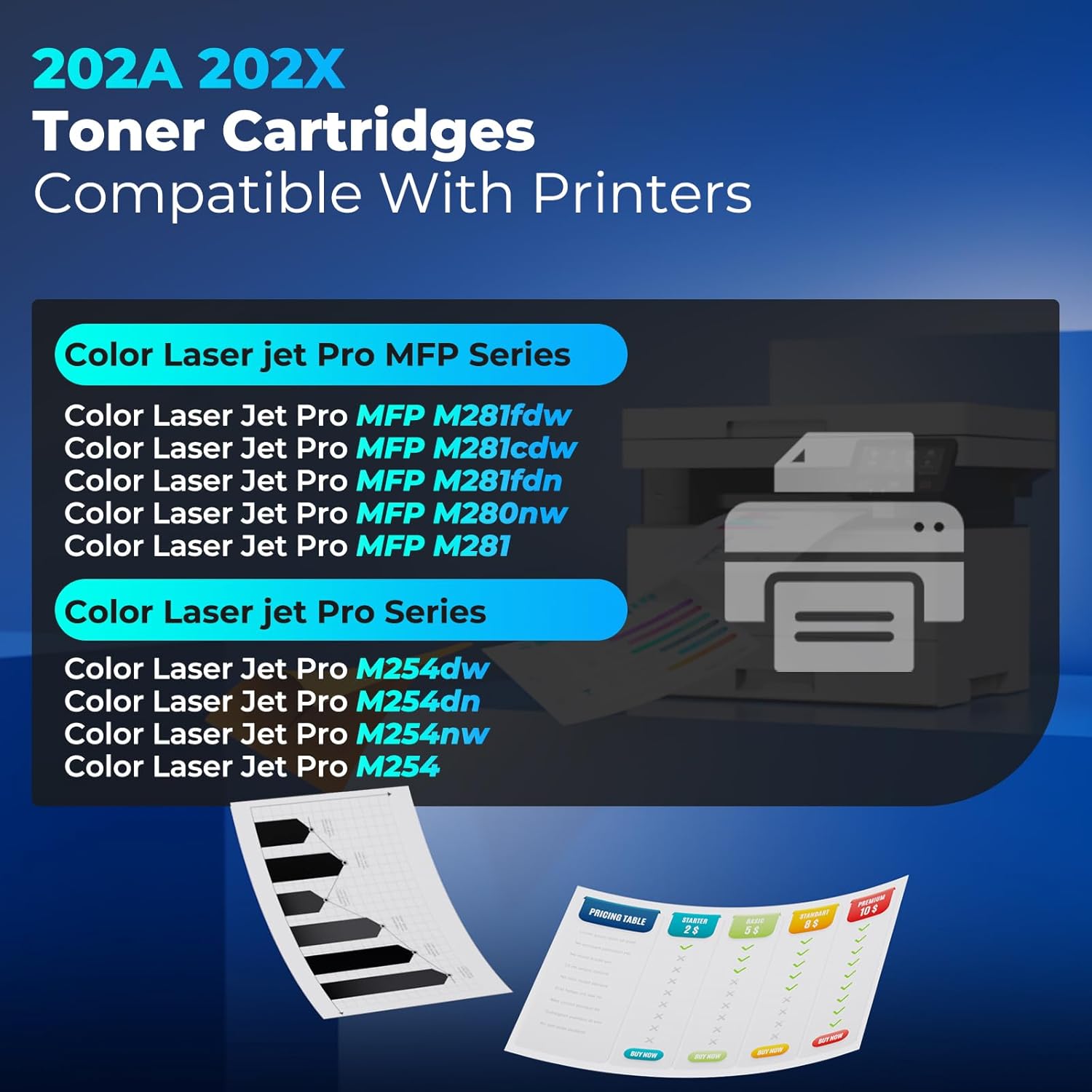 202X Toner Cartridges 4Pack Color Laser jet Pro MFP M281FDW M254DW M281CDW Compatible for HP 202X Toner Cartridges Combo Pack Compatible for Color Laser jet Pro MFP M281FDW M281CDW M281FDN M254DW M254