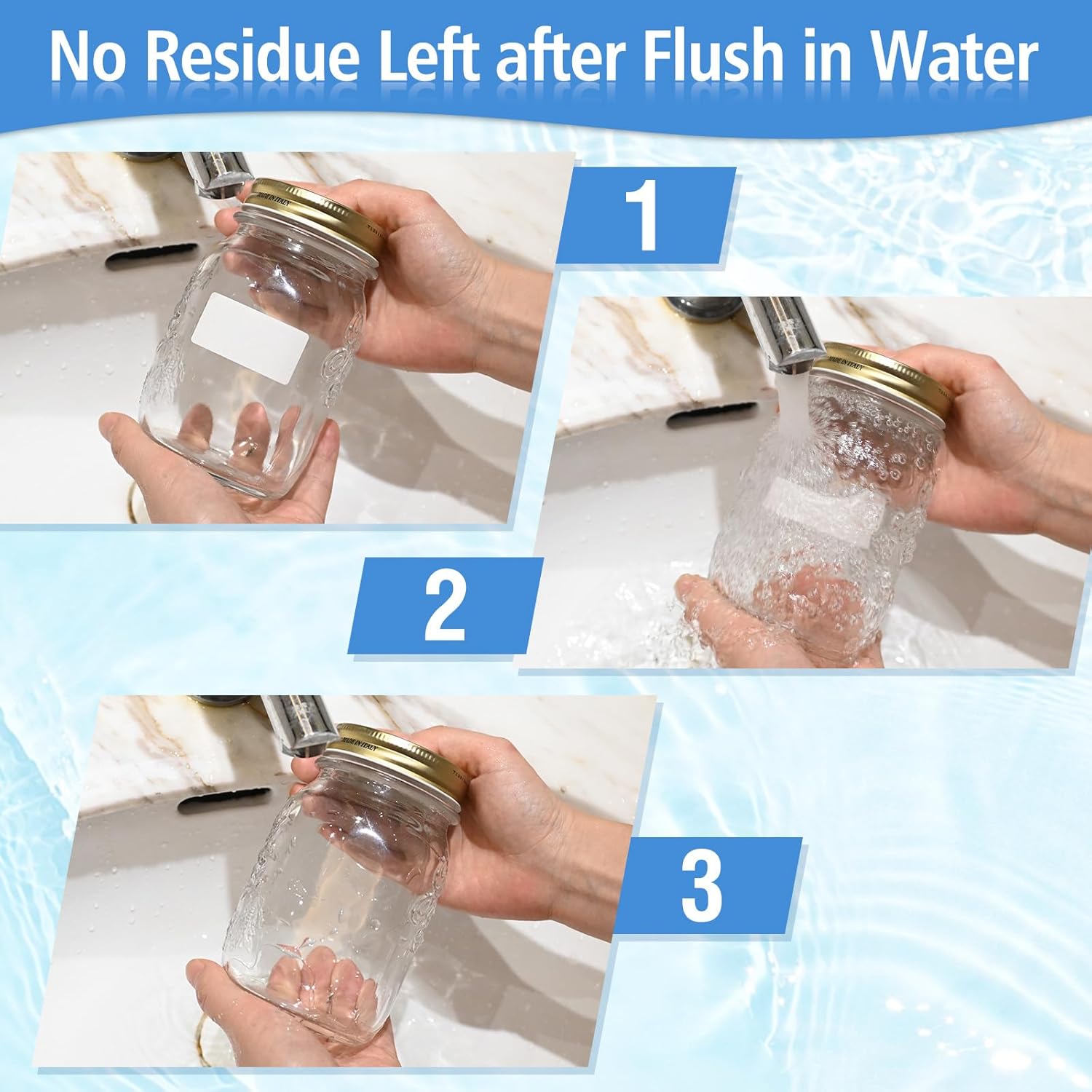 350 Blank Dissolvable Labels 1x2 Inch, White Washable Dissolvable Food Labels for Storage Containers, Canning, Jar, Bin (1 Roll - 350 Stickers)