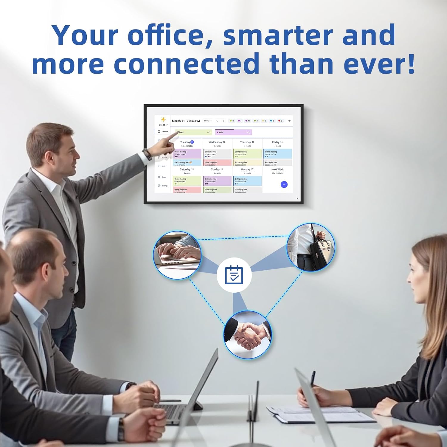 - 【⚙️ Versatile Mounting – Use as a Wall or Desk Smart Calendar】Set up your electronic calendar anywhere! Includes both wall-mount hardware and an adjustable stand for flexible placement in kitchens, offices, or bedrooms.