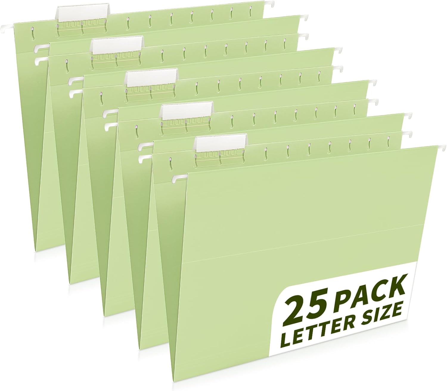 25-Pack Green Hanging File Folders, Letter Size (8.5" x 11") with 1/5-Cut Tabs,Includes 35 Transparent Label Cards & 50 Sticker Labels for Home & Office Organization