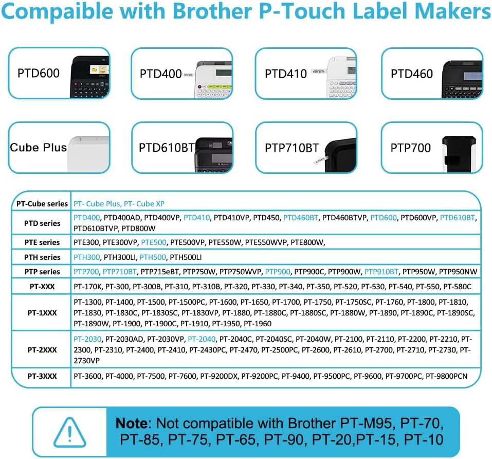 - Broad B Machine Compatibility: Tested and verified for Ptouch label makers requiring 18mm TZe tape, including D400/D600/E300/E500/P700/P900W H300 300/310/330 520/540/580C 1300-1960 2030-2730 3600/7500/7600 9200-9800PC series*