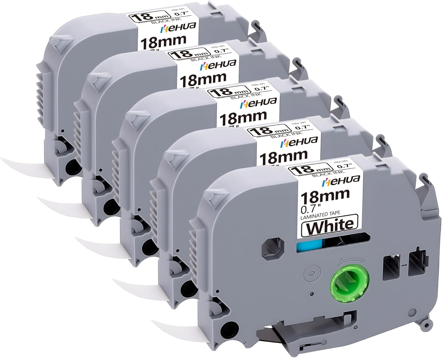 Hehua 18mm 0.7 Laminated White TZ Tape Compatible for Brother Label Maker TZe241 TZ-241 TZ241 TZe 241 3/4 x 26.2ft Label Tape for Ptouch PT D400 D600 D610BT P710BT P750W, Black on White, 5 Pack