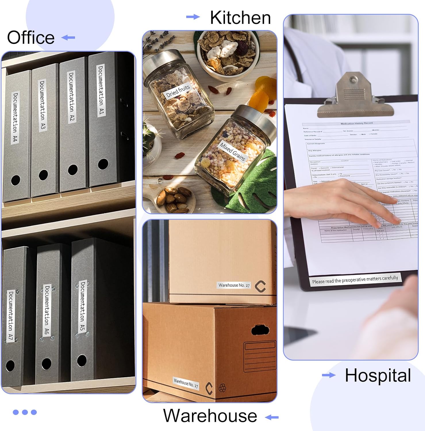 - Applications: Perfect for indoor use, it is an ideal solution for labeling tasks such as files, folders, classified documents, bookshelves, kitchens, books, supply cabinets, refrigerators, accessories, etc.