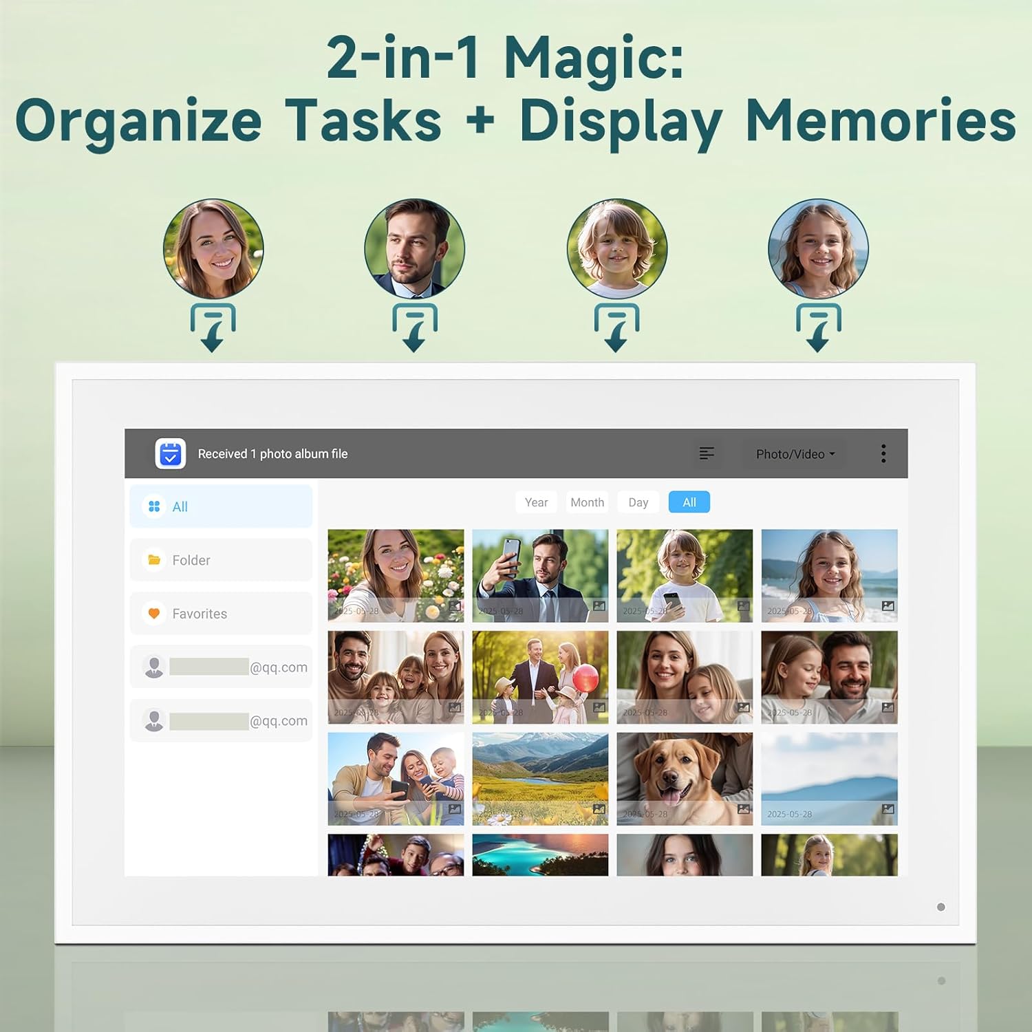 - 📸 Habit Tracker + Photo Frame Mode: ⏰ Set smart reminders + track habits! Bonus: Digital wall calendar turns into 📸 slideshow – display memories when idle!