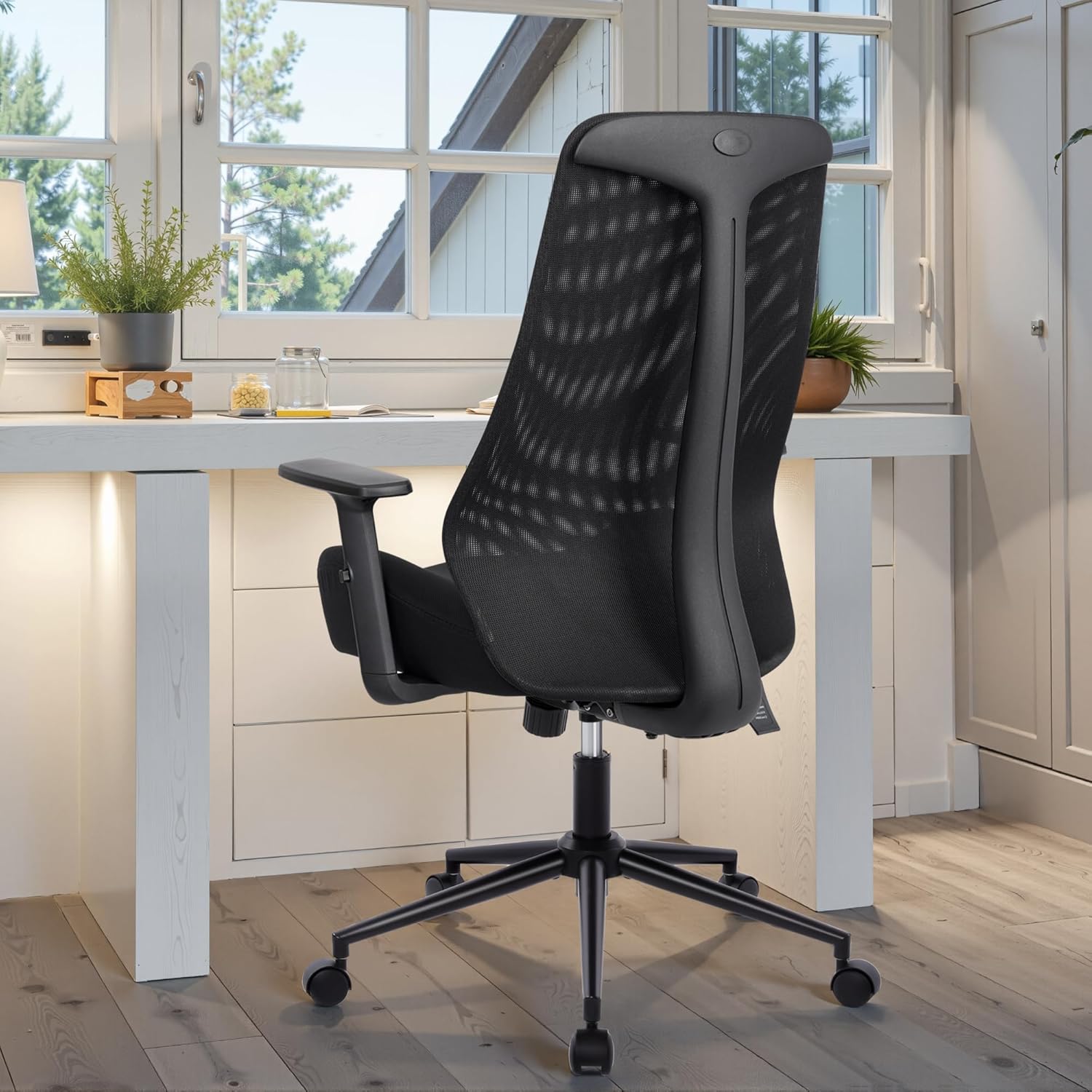 HYLONE Office Chair, 5" Thickened Seat Ergonomic Desk Chair with Adjustable Armrests, Home Office Computer Chairs for Long Hours Mesh Executive Chair(Black)