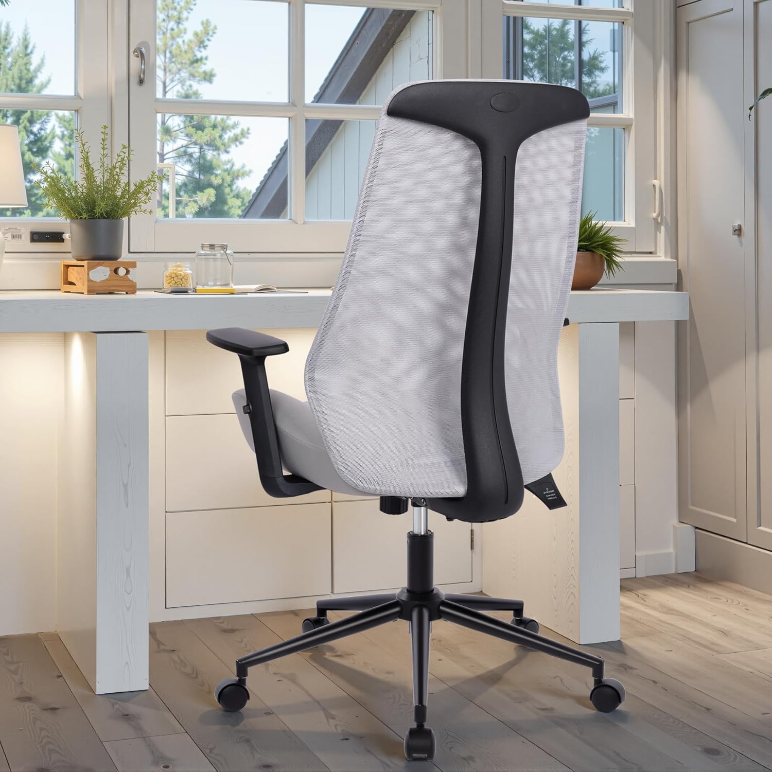 HYLONE Office Chair, 5" Thickened Seat Ergonomic Desk Chair with Adjustable Armrests, Home Office Computer Chairs for Long Hours Mesh Executive Chair(Black Base&Grey)