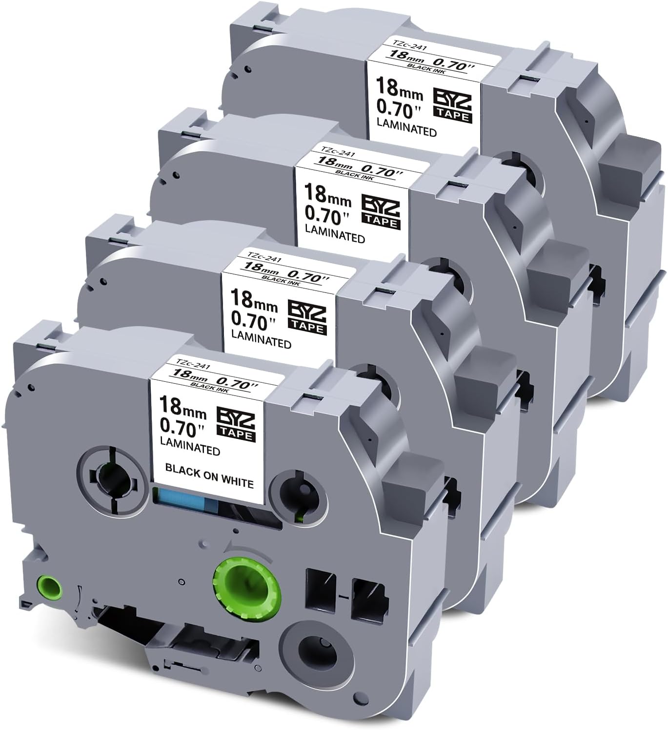 4PK Replacement for Brother TZe-241 Ptouch Label Tape 18mm 0.7 Laminated Tape for Brother PTD400 PTD410 PTD600, Black on White