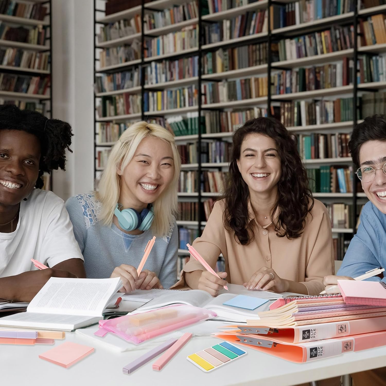 - Back to School Essentials: you will receive 12 pieces of pastel highlighters, 12 pieces of black ink writing pens in 6 different colors of pen shells, 12 pieces of pencils, 2 pieces of document bags, 1 piece of pencil pouch, 3 pieces of A5 notebooks, 3 pieces of B5 notebooks, 3 pieces of sticky notes, 2 pads of spiral index cards, 2 erasers and 2 file folders, almost everything you need for back to school