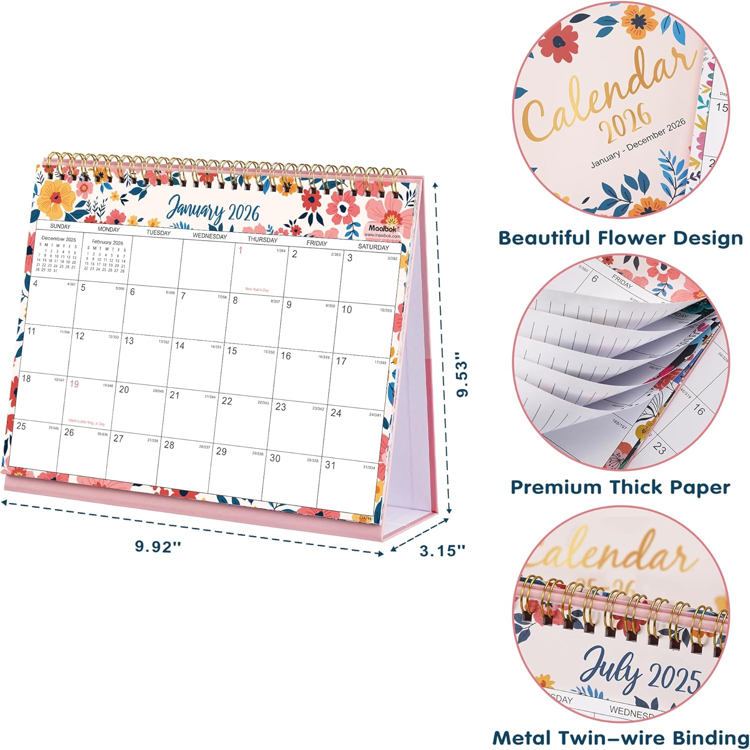 - 🌼 2026 DESK CALENDAR – JAN 2026 – DEC 2026, this desk calendar 2026 standing flip covers 12 months calendar for more than year-round planning or organizing. Size: 10" x 8.3", perfect for your desk to help you focus on easily scheduling daily life without taking up too much desktop space.