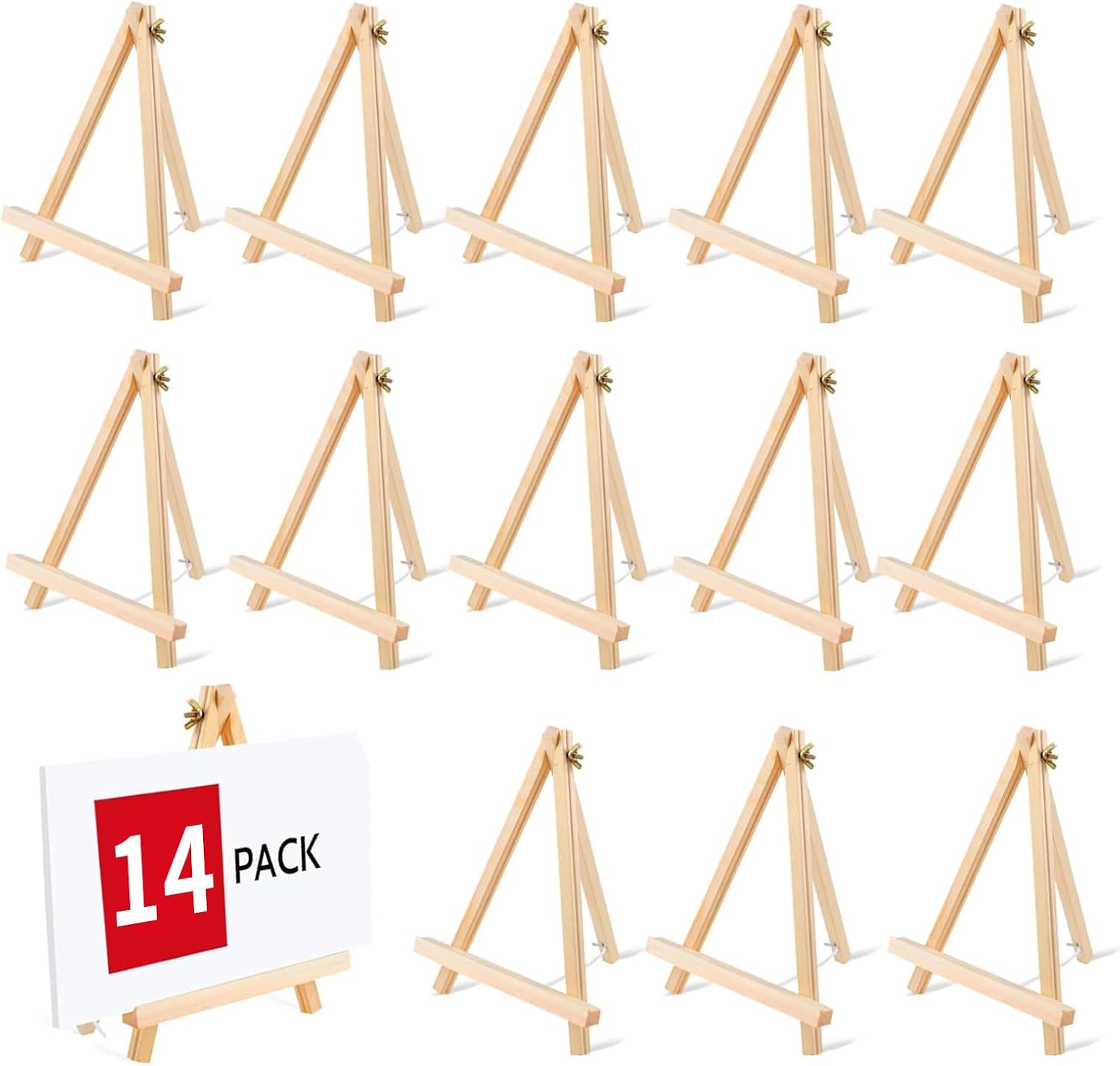 14 Pack 9 Inch Wood Easel, Painting Party Easel, Kids Student Tabletop Easels for Painting, Portable Canvas Photo Picture Sign Holder Tripod Painting Easels for Art & Crafts