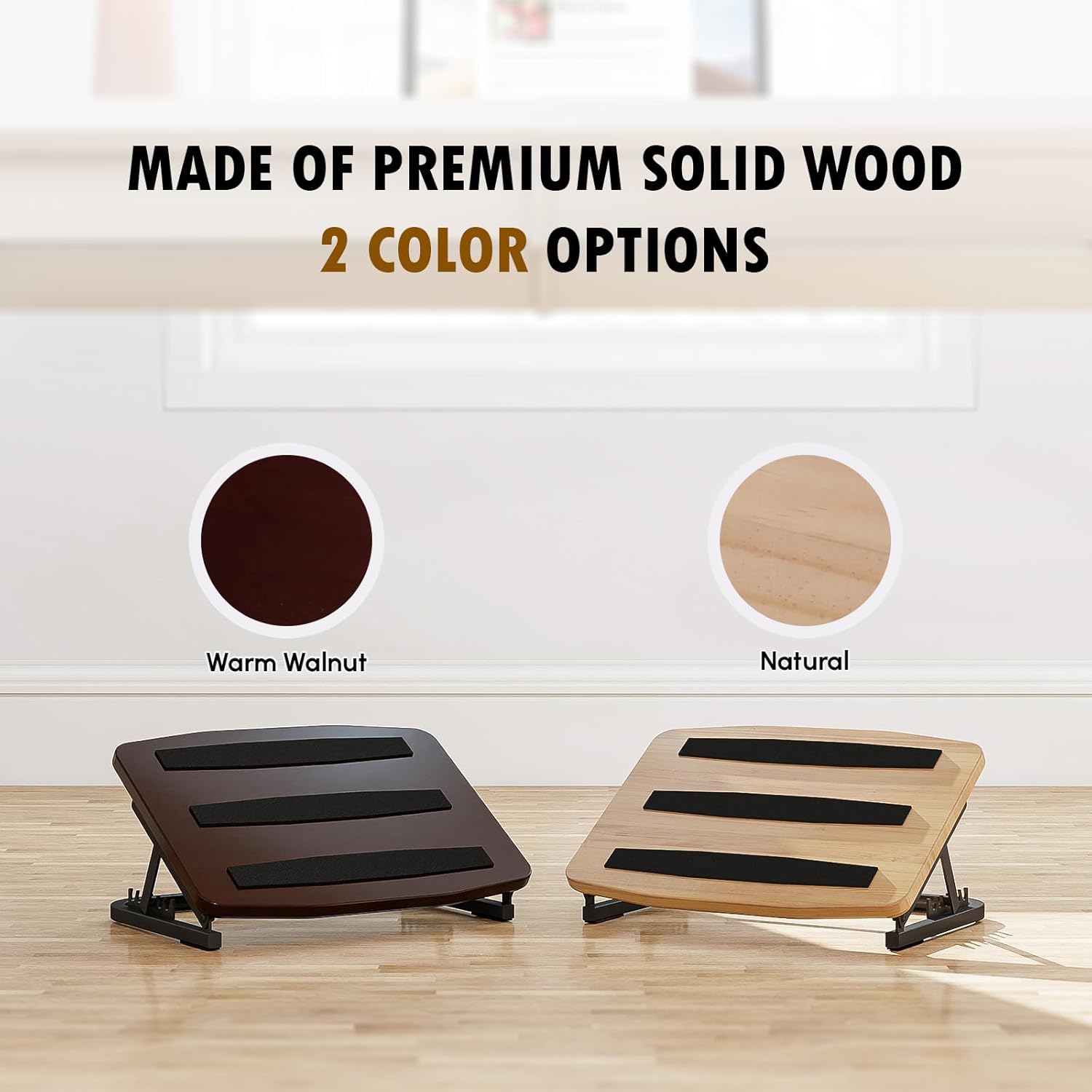 Foot Rest for Under Desk at Work, Ergonomic Wooden Desk Foot Rest with 7 Adjustable Angles, Anti-Slip Footrest Comfortable Foot Stools for Office Leg Rest, No Assembly