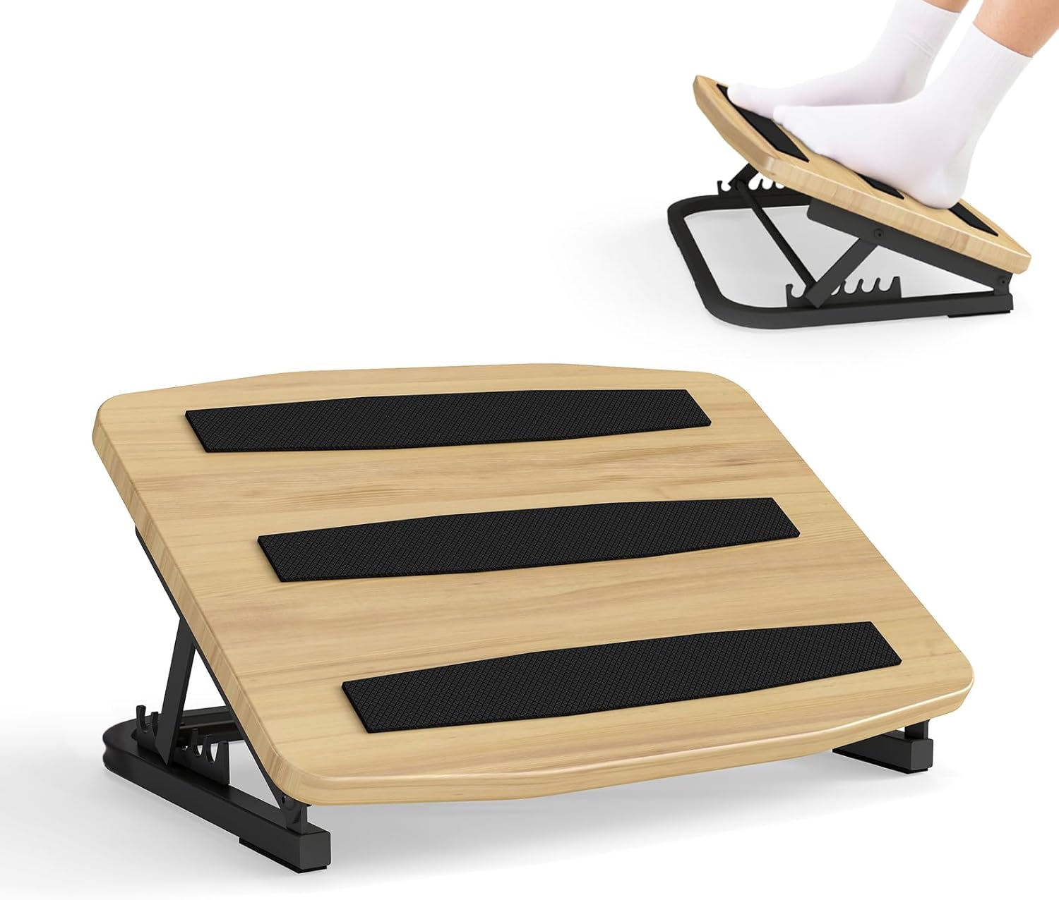 Foot Rest for Under Desk at Work, Ergonomic Wooden Desk Foot Rest with 7 Adjustable Angles, Anti-Slip Footrest Comfortable Foot Stools for Office Leg Rest, No Assembly